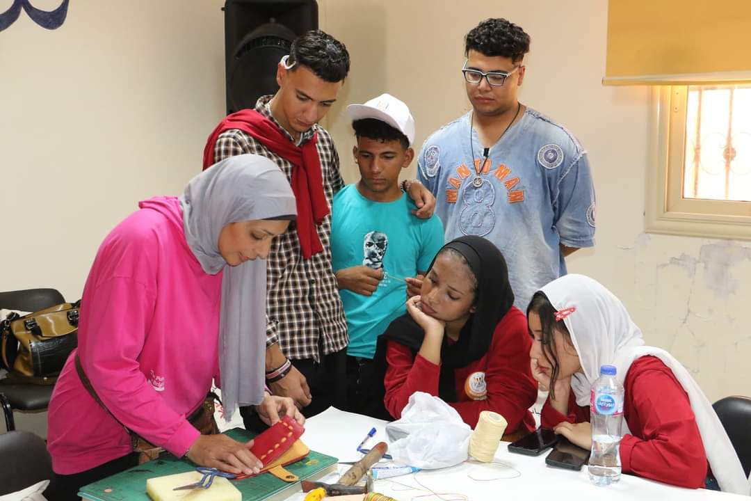 وخلال ورشة الحفر على النحاس قدّم المدرب يوسف جلال شرحا وافيا عن الخامات والأدوات وكيفية الاستفادة من تلك الحرفة لبدء مشروع صغير والترويج له، مع تدريبات على النقش بنوعيه البارز والغائر.