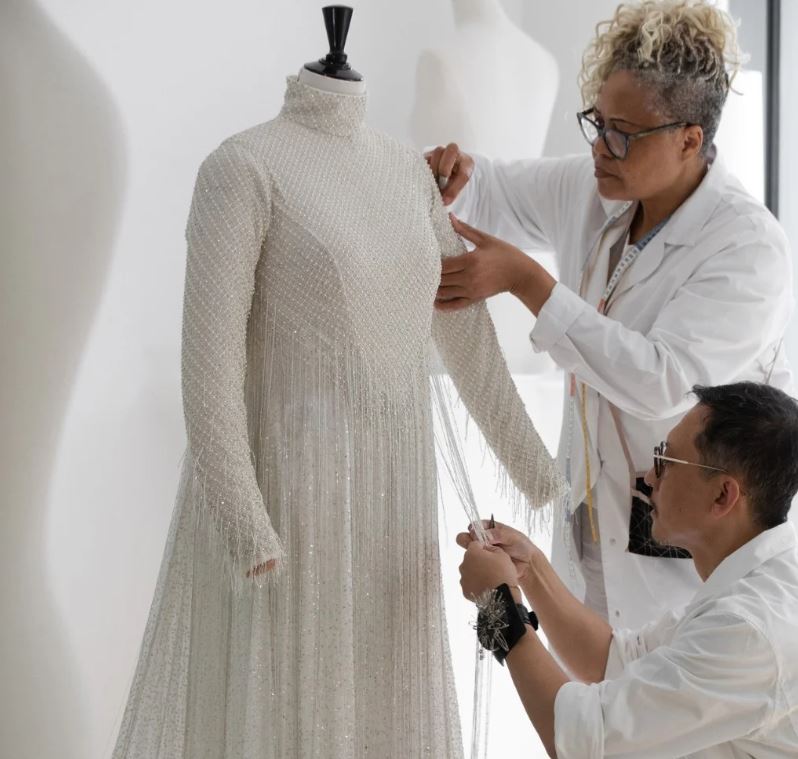 وحرصت مصمّمة دار الأزياء الفرنسية ماريا جرازيا كيوري على تصميم الفستان خصيصاً لسيلين ديون، وكشفت الدار في مقطع مصوّر نشرته عبر "إنستجرام" أن التصميم تطلّب أكثر من ألف ساعة عمل ليخلّد مهارة التطريز الهائلة لمصمّمي "ديور".