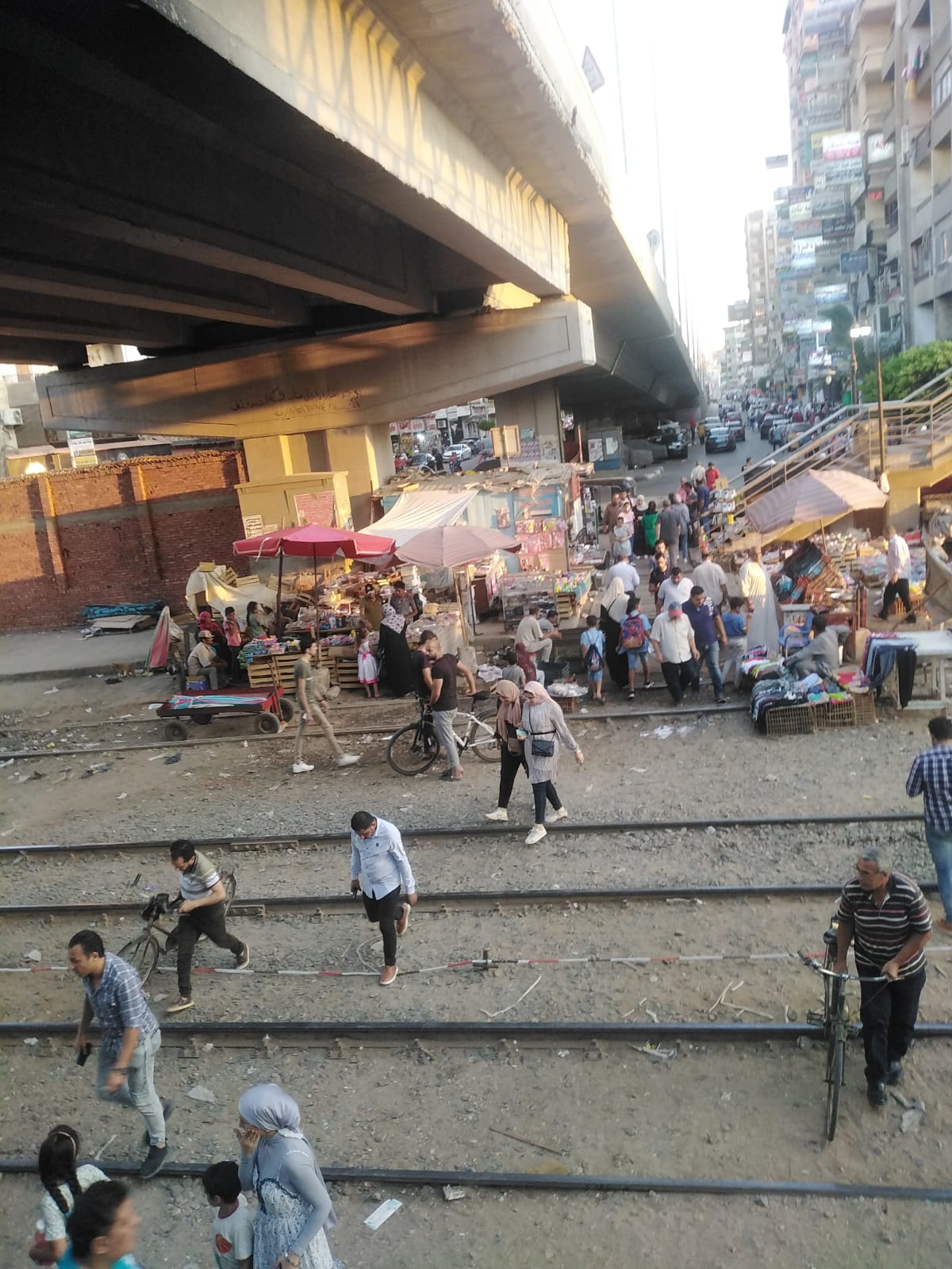 وسوق مزدحمة تتخذ من منطقة المزلقان مستقراً لها، يجلس المواطنون على جانبي شريط القطار، ويبيعون الخضراوات والفاكهة والسمك وحتى لعب الأطفال، وتعبر عربات «الكارو» ونصف النقل والـ«تكاتك» القضبان ببطء شديد لا يتماشى مع خطورة المكان.