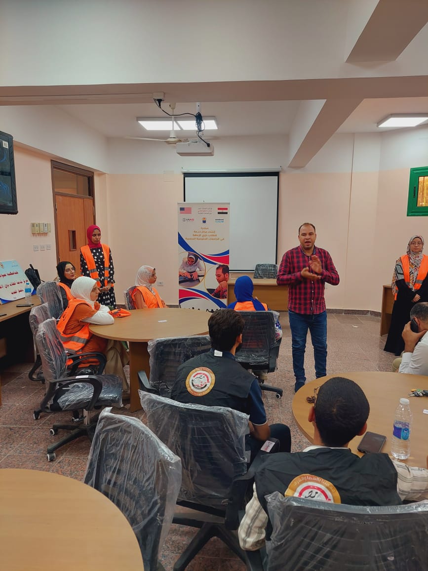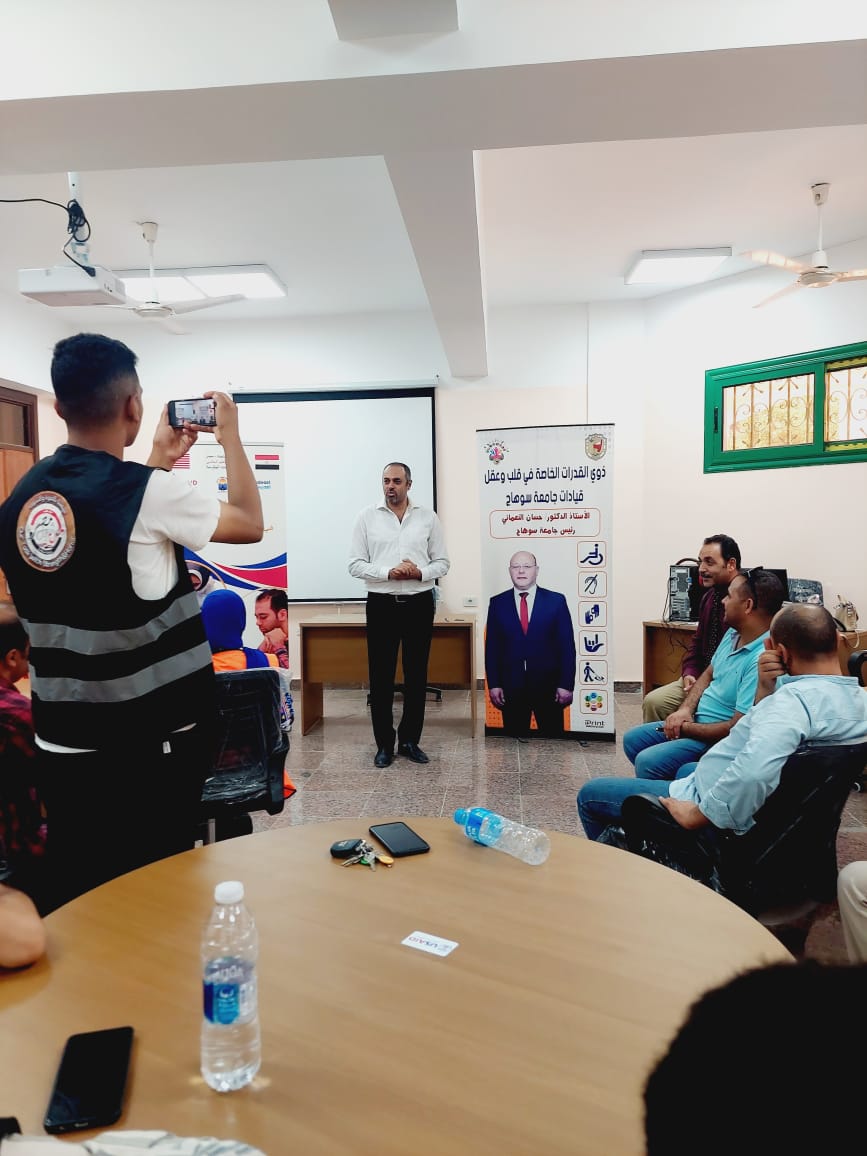 وأشار الدكتور طارق زكي موسى الى أن التدريب استهدف ٣٠ طالب وطالبة من فريق أسرة طلاب من أجل مصر، وذلك بحضور طلاب رفقاء ذوي الإعاقة بجامعة سوهاج من طلاب وطالبات برنامج الفئات الخاصة بكلية الآداب، مضيفاً انه حاضر بالتدريب كلاً من الدكتور محمد عبد العظيم مدرس مادة تخصص الإعاقة السمعية ومترجم ومدرب لغة الإشارة، و اسلام اسعد المعيد بقسم علم النفس تخصص الإعاقة البصرية بكلية الآداب بسوهاج.
