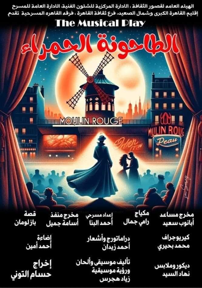 وتقدم فرقة القاهرة عرضها "الطاحونة الحمراء" يومي الأحد والاثنين 11 و 12 أغسطس في تمام العاشرة مساءً، قصة باز لورمان وكريج بيرس، كتابة مسرحية أحمد حسن البنا، وإخراج حسام التوني، ويناقش العرض فكرة أنه لا مكان للمشاعر أو الحب في عالم مزدحم بالقسوة يتصارع فيه الجميع من أجل كسب المال وحب التملك.