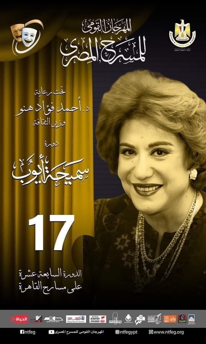 يشهد مسرح السامر بالعجوزة، في العاشرة من مساء اليوم الأربعاء، انطلاق أولى العروض المسرحية التي تشارك بها الهيئة العامة لقصور الثقافة في المهرجان القومي للمسرح المصري، في دورته السابعة عشرة، "دورة الفنانة سميحة أيوب"، برعاية د. أحمد فؤاد هنو، وزير الثقافة، والمقرر انعقادها في الفترة من 30 يوليو وحتى 17 أغسطس بعدد من مسارح القاهرة والجيزة.