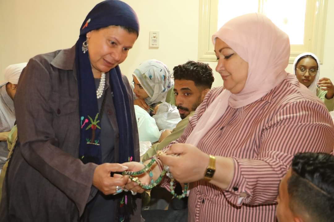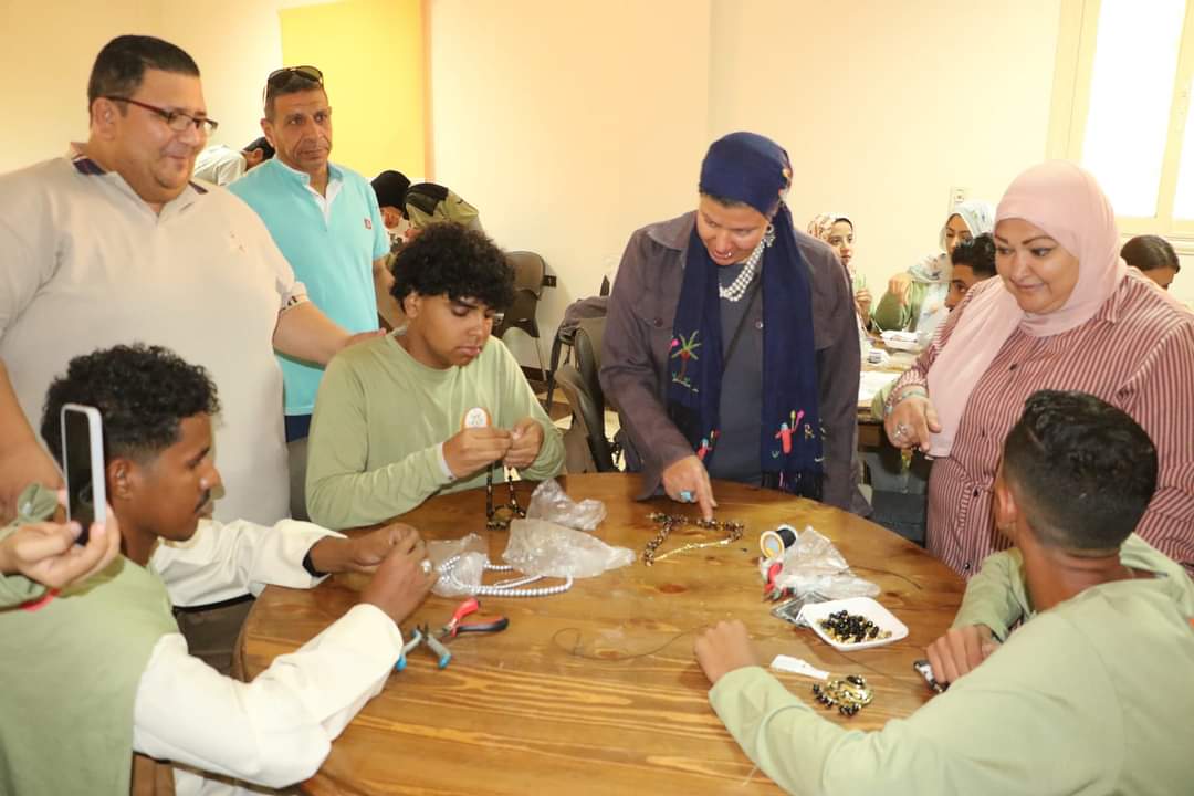 وتواصلت الفعاليات مع الورش الحرفية، وقامت المدربة شيرين عفيفي خلال ورشة الحلي بتدريب المشاركين على تنفيذ قلادات بتصميمات مستوحاة من الحضارة المصرية القديمة باستخدام الخرز الكسر.