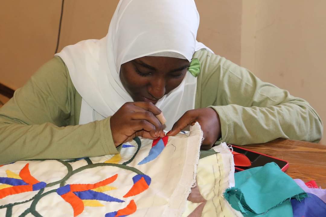 ونفذ المتدربون خلال ورشة الخيامية للمدرب عماد عاشور، خداديات تحمل تصميم لزهرة اللوتس بألوان زاهية.