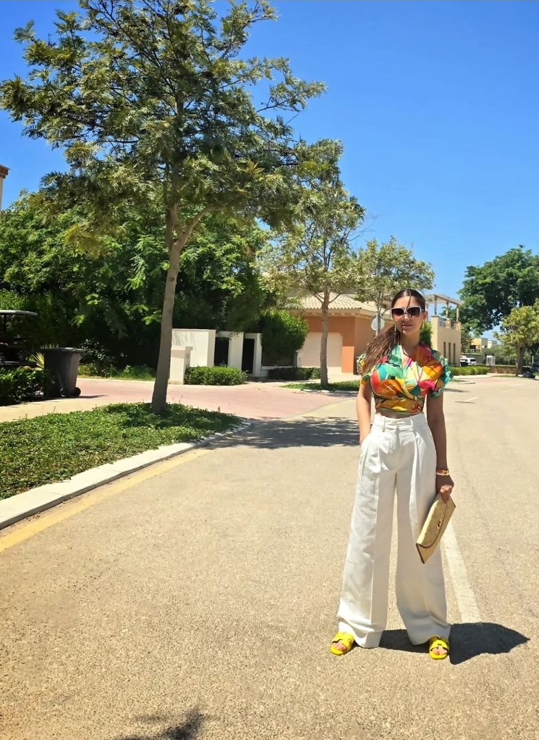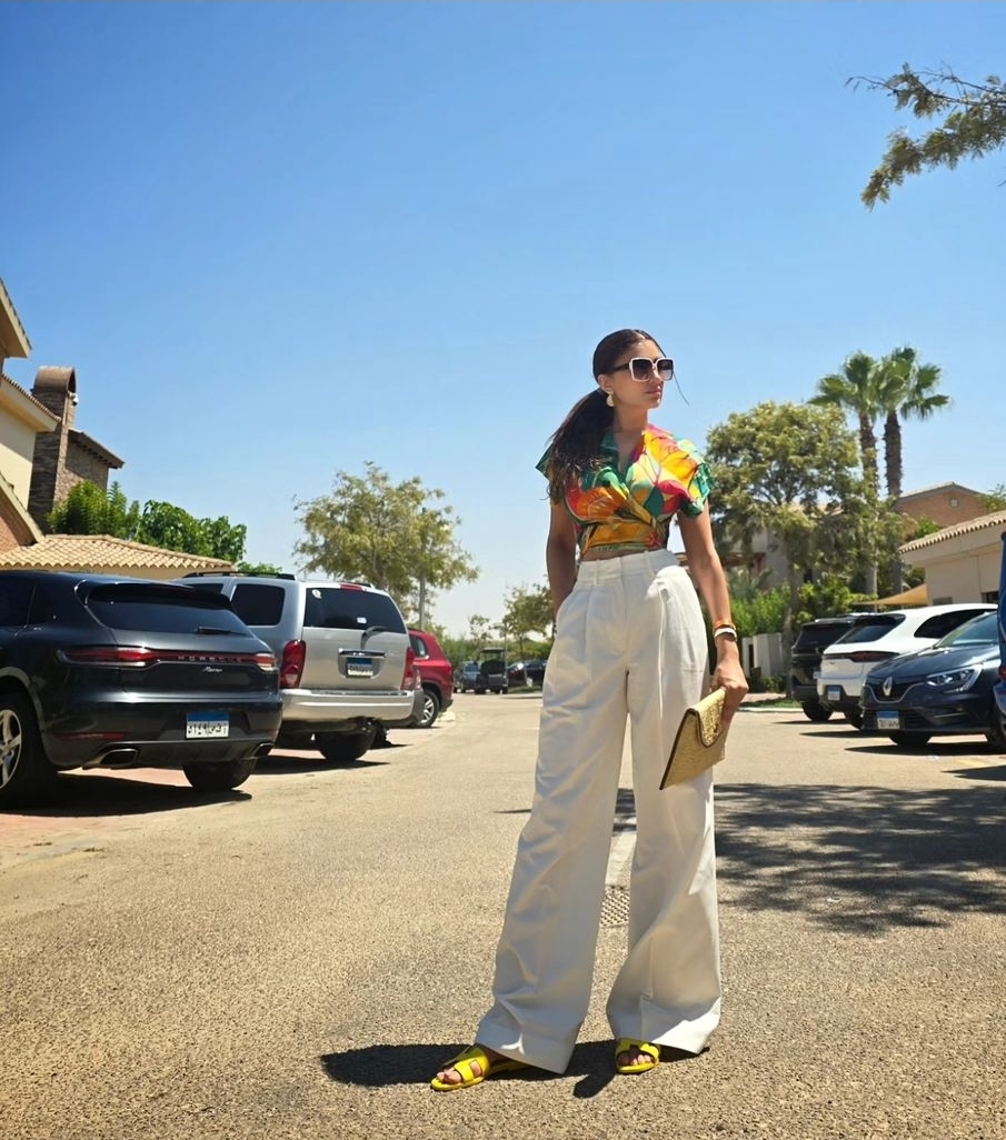 وبدت مي عمر بإطلالة صيفية مفعمة بالوان الربيع، حيث ارتدت بلوزة قصيرة كشفت عن خصرها ونسقت عليها بنطال هاي ويست باللون الأبيض فيما انتعلت سليبر باللون الأصفر.