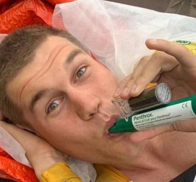 ومن بين الصور التي نشرها بلاب على وسائل التواصل الاجتماعي، صورة له وهو يصفر بصافرة خضراء - والتي تقدم للمرضى في محاولة لتقليل الألم الشديد.