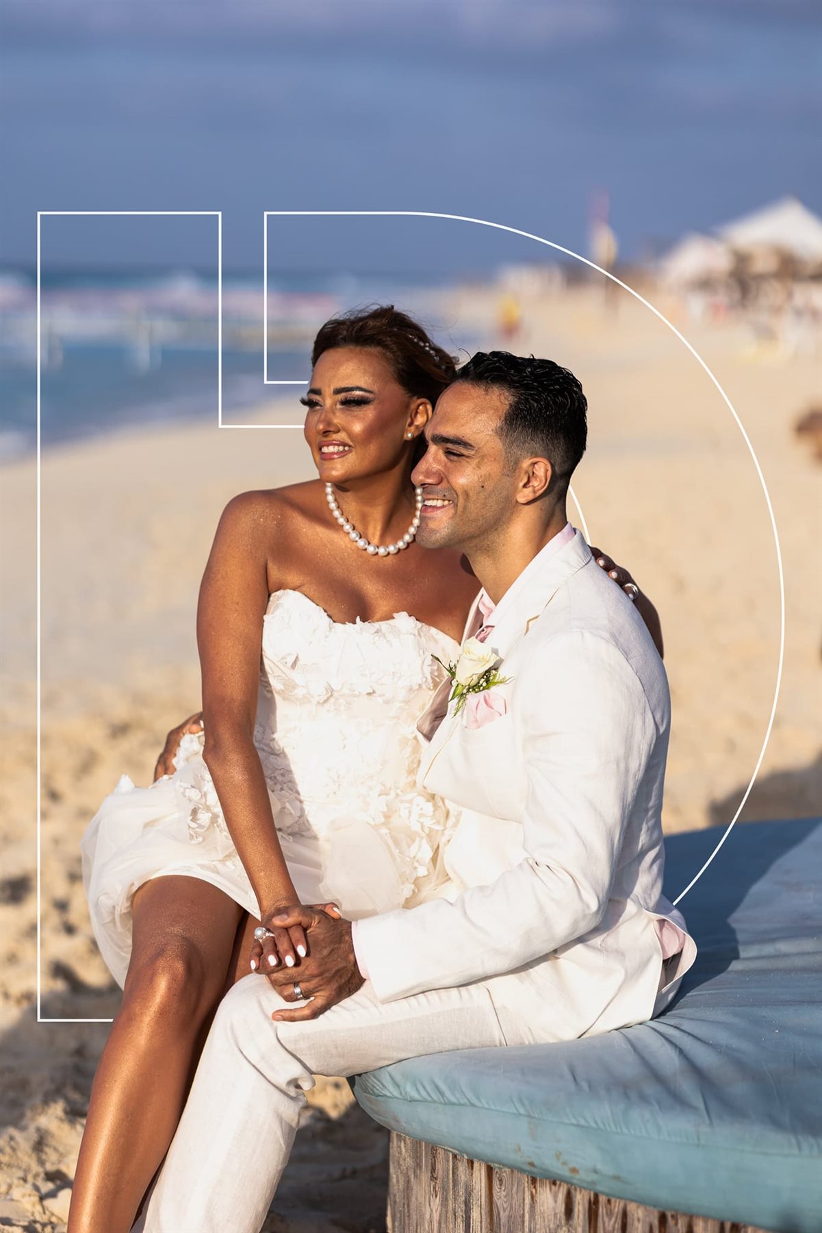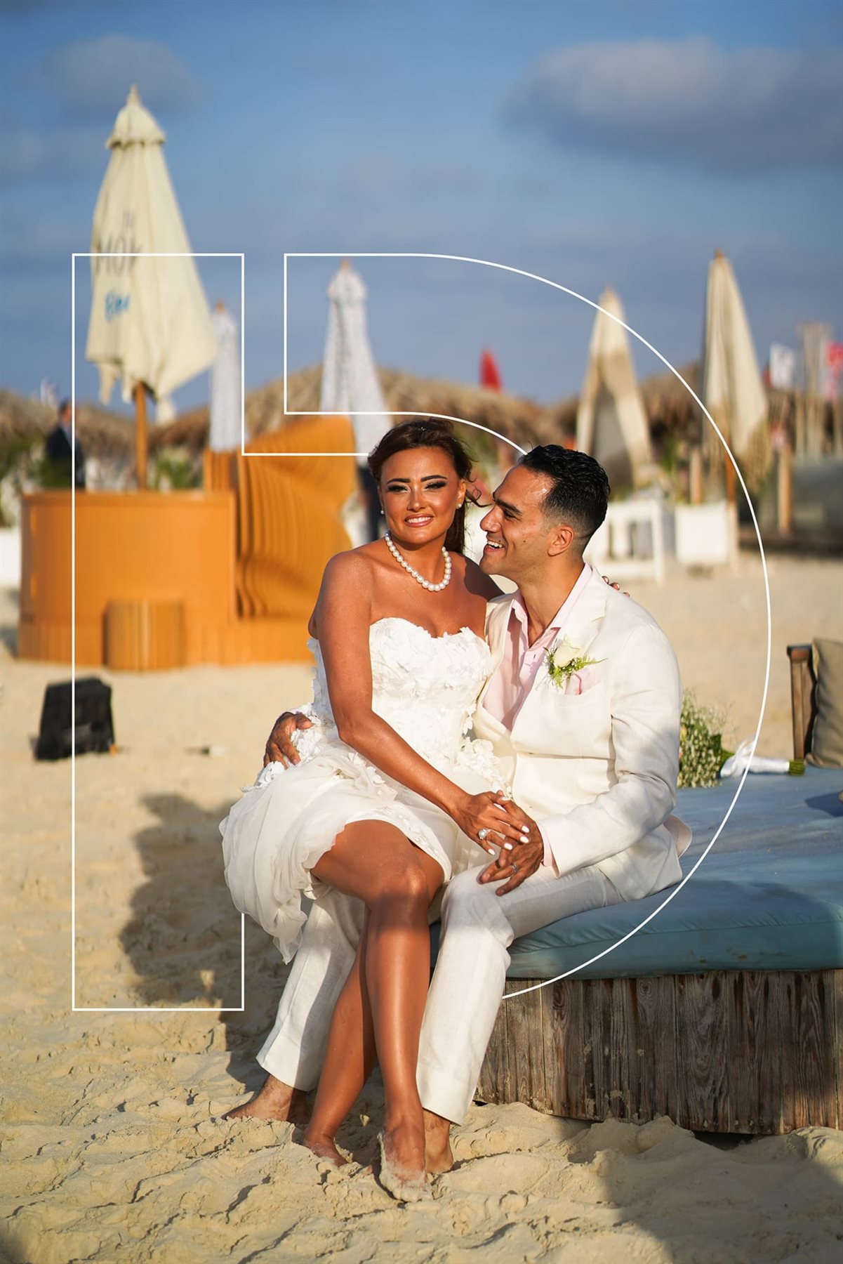 بشرى تطل بالأبيض بين أحضان خالد محمود حميدة.. أول صور من حفل الزفاف عالبحر