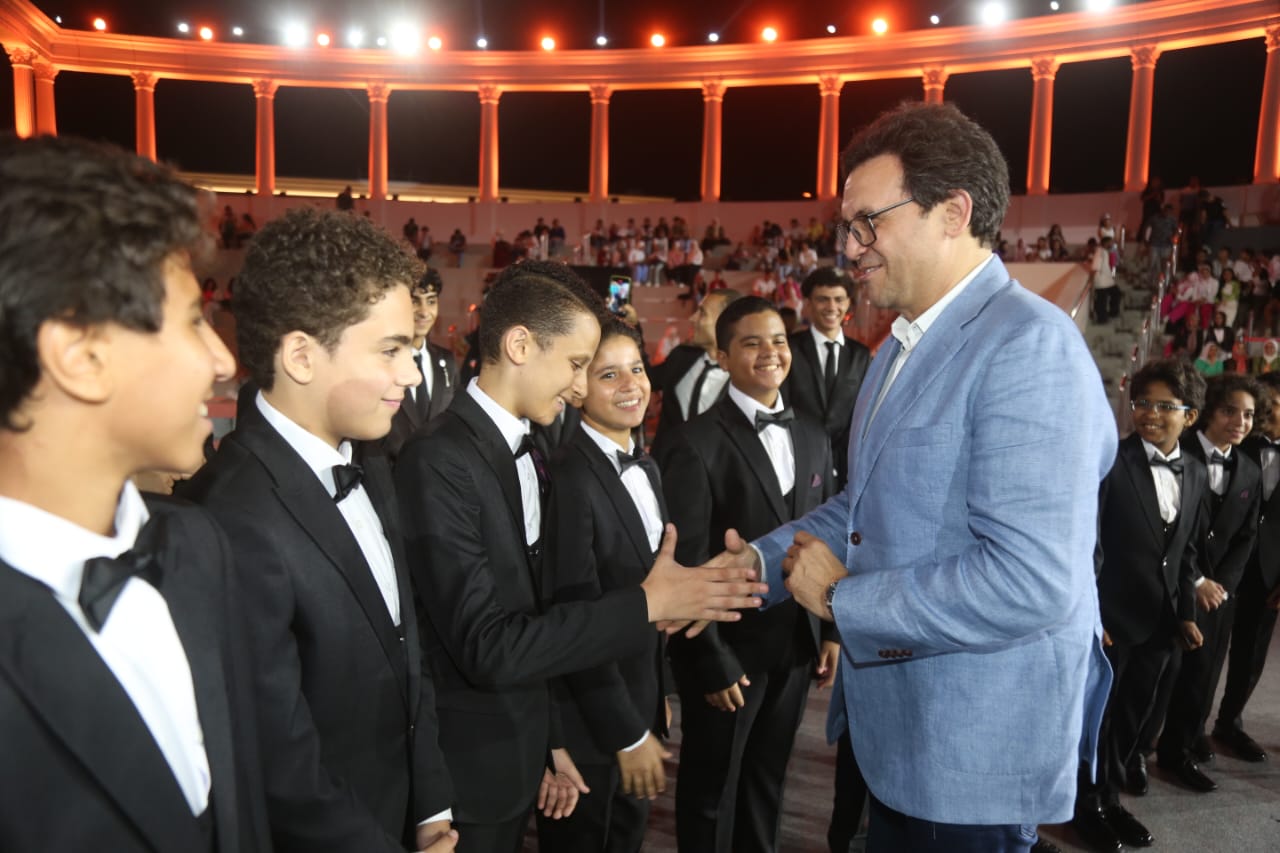 وأشاد هنو بحفل كورال مركز تنمية المواهب، التابع لدار الأوبرا المصرية، مشيرا إلى أنه ضم مجموعة من المواهب الواعدة من أطفال مصر وهم سفراء ثقافتنا، ويمثلون المستقبل المشرق لوطننا، وهم خير دليل على أن الإبداع المصري لا يزال يزدهر. قائلا: حرصنا أن يكونوا شهود معنا اليوم على ما تشهده أرض العلمين الجديدة من بناء وتنمية.