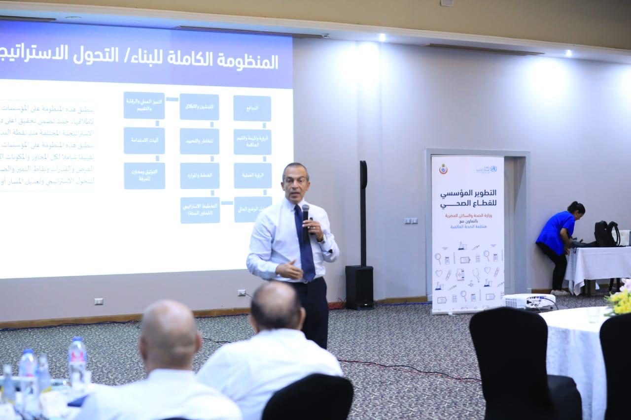 ولفت الوزير إلى أن استراتيجية التطوير المؤسسي للقطاع الصحي، شهدت تحولا كبيراً وفصل تقديم الخدمات عن وظائف التمويل والتنظيم وإنشاء ثلاث هيئات إدارية، وهم هيئة التأمين الصحي الشامل، وهيئة الرعاية الصحية المصرية، والهيئة العامة للاعتماد والرقابة، مشيراً إلى أهمية موائمة الوظائف الفرعية والمهام في تقديم خدمات الرعاية الصحية، ورسم خريطة لجميع نقاط الاتصال والموظفين العاملين لإرشاد تطوير وتعزيز القوى العاملة مع التركيز على قدرات الصحة العامة والتأهب لحالات الطوارئ وكفاءات الاستجابة.