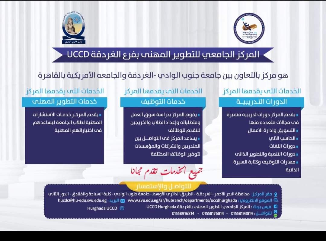 قامت جامعة جنوب الوادى فرع الغردقة بإنشاء المركز الجامعي للتطوير المهني بالغردقة UCCD بالتعاون مع الجامعة الأمريكية AUC وبدعم من الوكالة الأمريكية للتنمية الدولية USAID