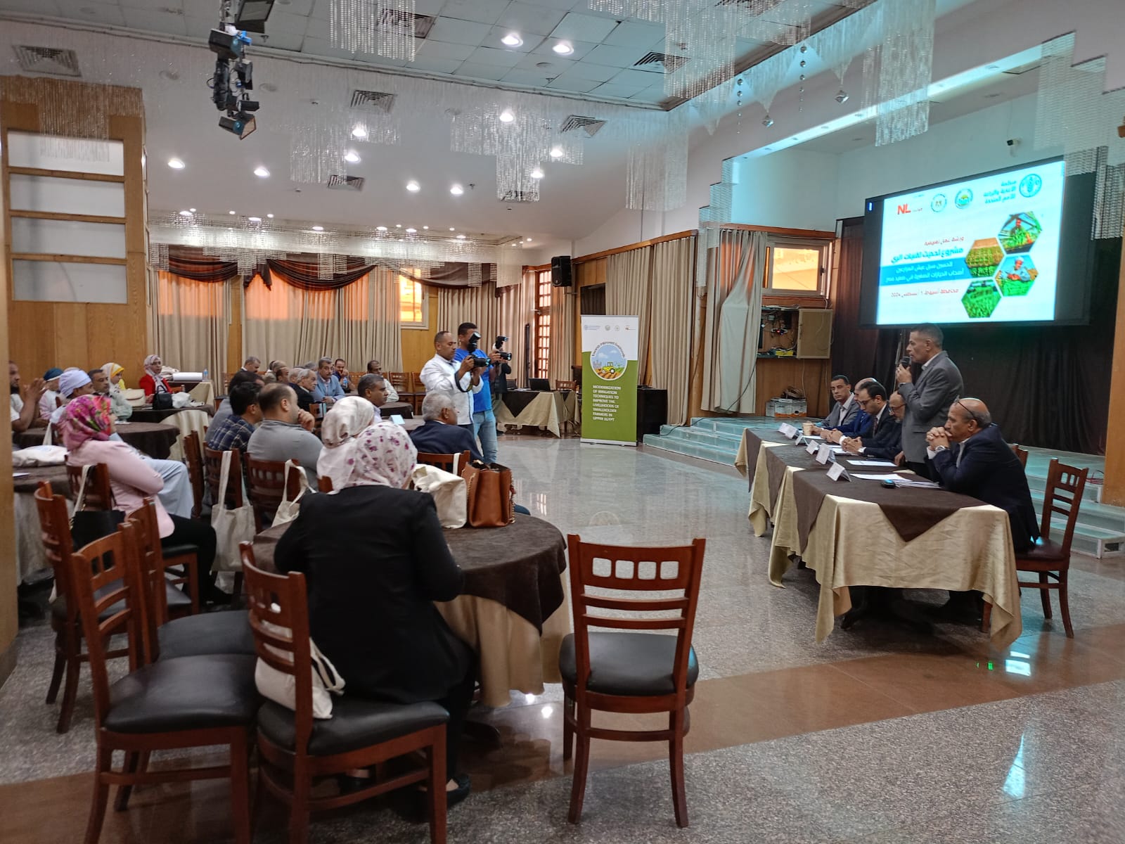جاء ذلك بحضور الدكتور محمود عبد العليم نائب رئيس جامعة أسيوط لشئون خدمة المجتمع وتنمية البيئة، ومجدي نجيب وكيل وزارة التضامن الإجتماعي بأسيوط، والمهندس حاتم عبدالصبور وكيل وزارة الري بأسيوط، والمهندس محمود صبحي وكيل وزارة الزراعة بأسيوط، والدكتور خالد شاتيلا مدير المشروع بمنظمة الفاو وفريق عمل المشروع بمحافظة أسيوط ولفيف من مهندسي الري والزراعة والجمعيات الأهلية والمزارعين وممثلي الجهات المعنية.