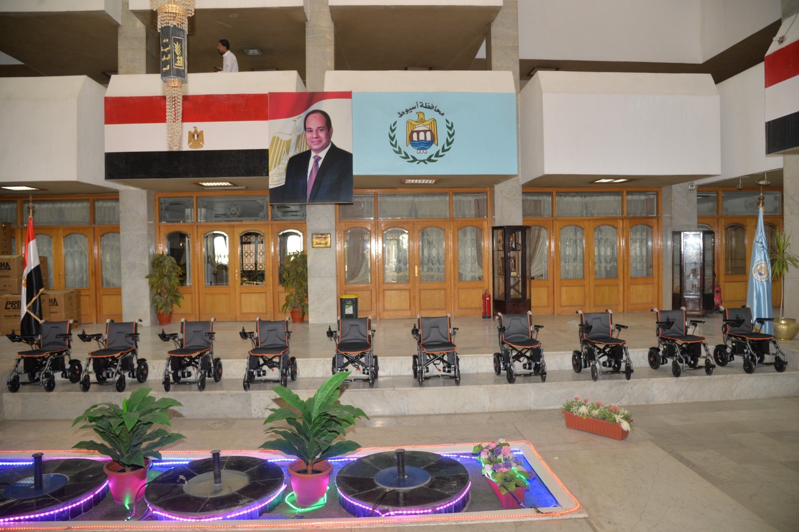 تسلم اللواء دكتور هشام أبو النصر محافظ أسيوط، 10 كراسي كهربائية متحركة وذلك بديوان عام المحافظة، تمهيداً لتسليمها على المستحقين من ذوى الهمم.