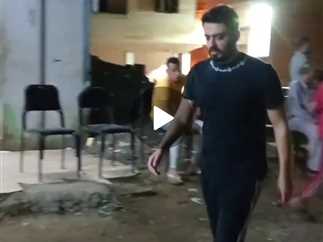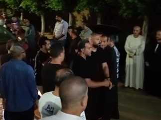 حرص العوضي على مواساة طليقته ياسمين عبدالعزيز بعد انهيارها خلال تشيع جثامين المُنتجين بمشاركة أهالى قريتهم.