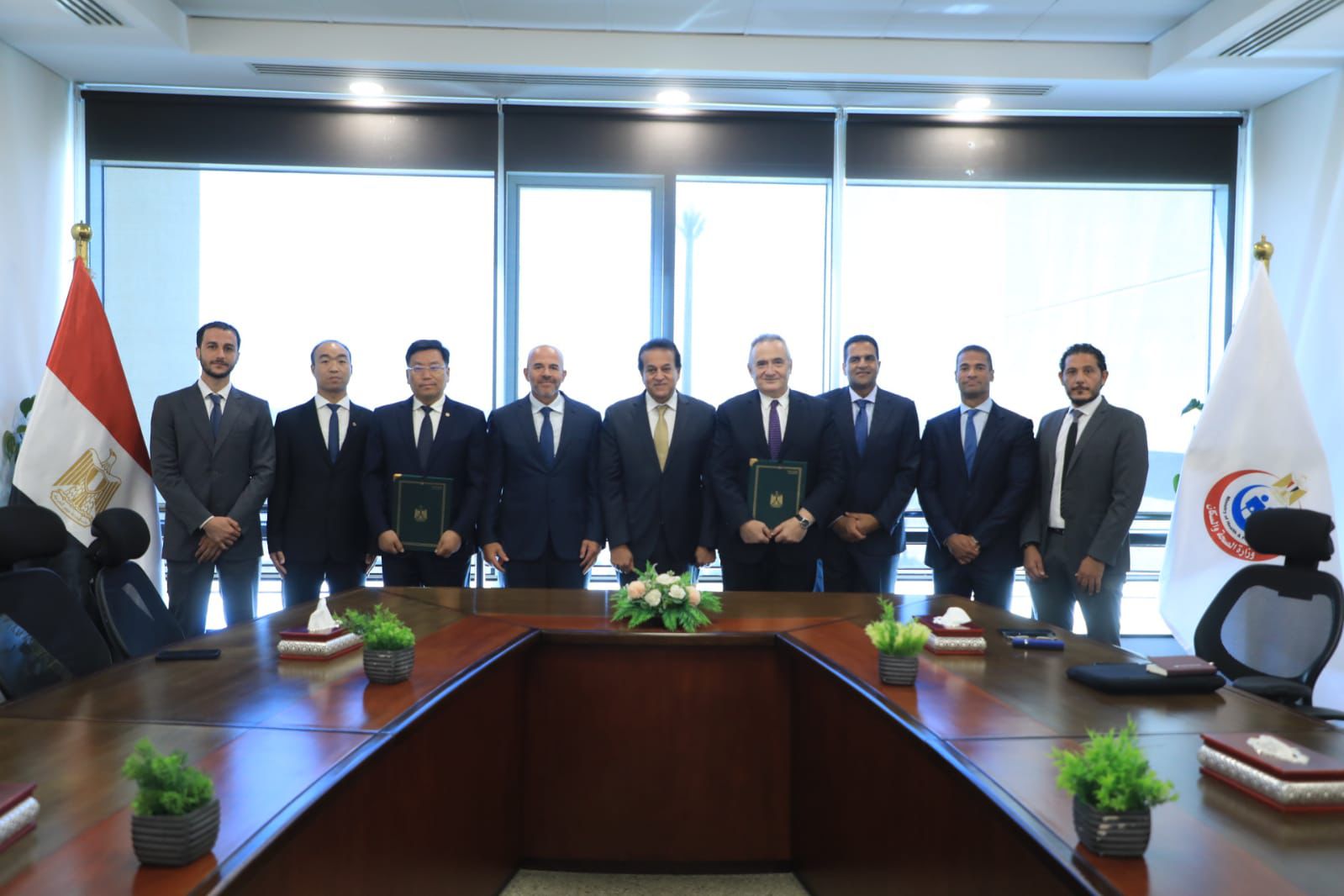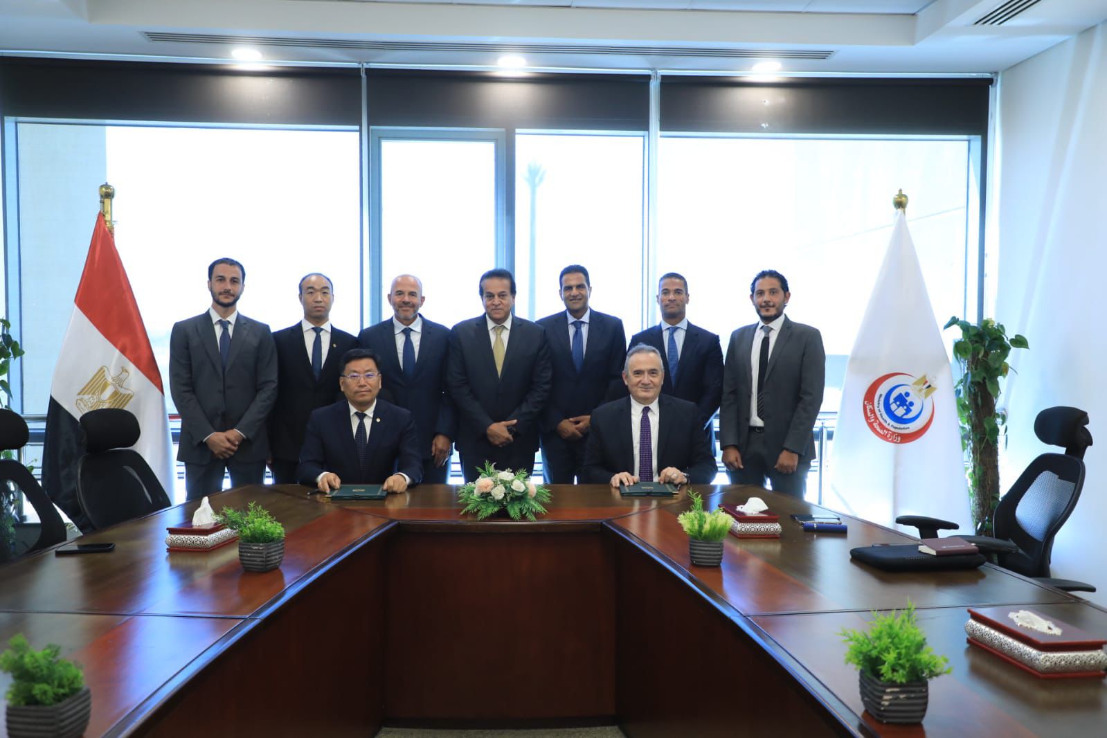 وقع البروتوكول من جانب وزارة الصحة والسكان، الدكتور محمد مصطفى عبدالغفار رئيس الهيئة العامة للمستشفيات والمعاهد التعليمية، ومن جانب الشركة السيد تشانغ وايتساي، رئيس مجلس إدارة cscec الصينية.