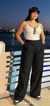 وفضلت لم خصلات شعرها ذيل حصان ولم تتكلف بوضع المكياج بل اكتفت بوضع لمسات ناعمة من المكياج المتناغم مع لون بشرتها ولون البينك في الشفاه.