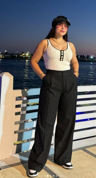 وظهرت بوسي بإطلالة رياضية تعكس شباب روحها، مرتدية جمبسوت مجسم صمم بشكل جذاب بقماش مضلع لتواكب موضة 2025، وعكست قوامها الرشيق الممشوق.