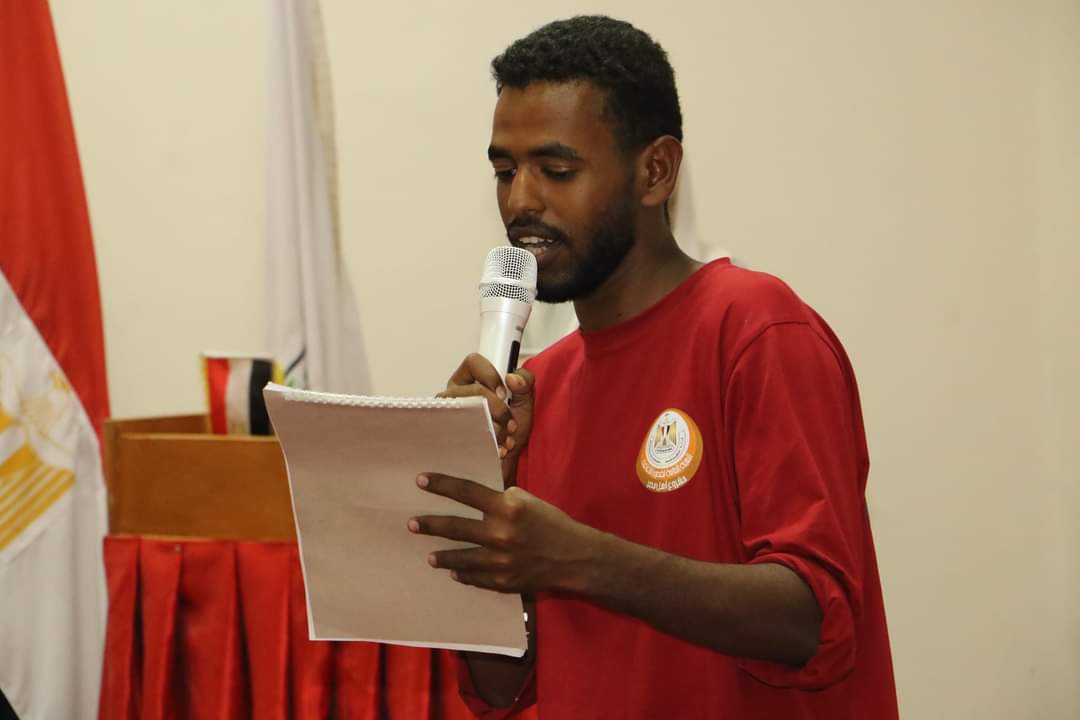 وفي القاعة الرئيسية بدأ الحفل بالسلام الوطني، ونقل الكاتب محمد عبد الحافظ ناصف تحية دكتور أحمد فؤاد هنو، وزير الثقافة، للشباب والحضور، مقدما شكره للوزير لدعمه الكبير لفعاليات الملتقى، وأعرب "ناصف" عن سعادته بوجوده بين شباب المحافظات الحدودية حيث التنوع الثقافي المهم الذي يؤكد ثراء البيئة المصرية، والمواهب الحقيقية التي تزخر بها.