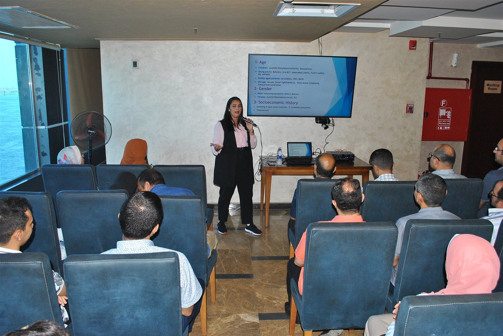 وتناولت مدرس طب وجراحة العيون بجامعة الإسكندرية كل ما هو جديد في طرق التشخيص والعلاج لحالات إلتهابات الجسم القزحي بالعين وفق آخر الأبحاث والدراسات العلمية العالمية .