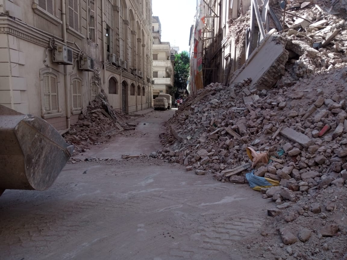 انهيار عقار مكون من 4 طوابق بحي شرق المنصورة| تفاصيل