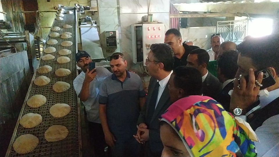 واستمع الوزير والمحافظ، لشرح من إبراهيم محمود قبيصي صاحب المخبز، عن مراحل إنتاج الخبز بداية من استلام حصة الدقيق وحتى بيع الخبز للمواطنين، طبقاً للمنظومة التموينية.