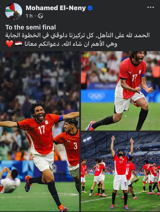 النني يوجه رسالة بعد تأهل مصر لنصف نهائي أولمبياد باريس