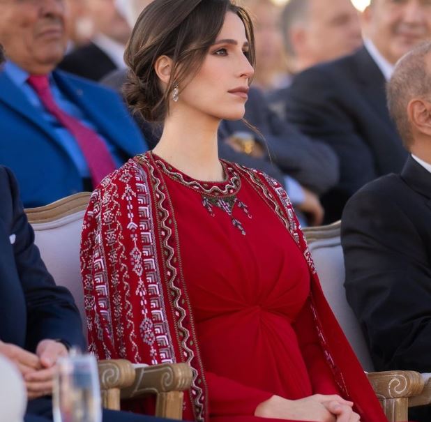 منذ الإعلان عن خبر حمل الأميرة رجوة ظهرت زوجة أمير الأردن الحسين بن عبدالله بمجموعة من الإطلالات العملية التي اتسمت بالأناقة، وغلب عليها الطابع الهادئ الذي تفضله، فقد شاهدناها في مرحلة متأخرة من الحمل خلال جلسة تصوير خضعت لها برفقة ولي العهد في صورة قامت بنشرها الملكة رانيا، وهي ترتدي فستانا طويلا بلون نيود فاتح، مميز بأكمام قصيرة تتوسطها فتحة مع ياقة ضيقة، وحدد الفستان معالم حملها بقصته الضيقة الخالية من النقوشات والتطريزات، وزينته سمو الأميرة بأكسسوارت عصرية، كما أنها تركت شعرها الويفي منسدلاً خلف ظهرها بكل أنوثة.