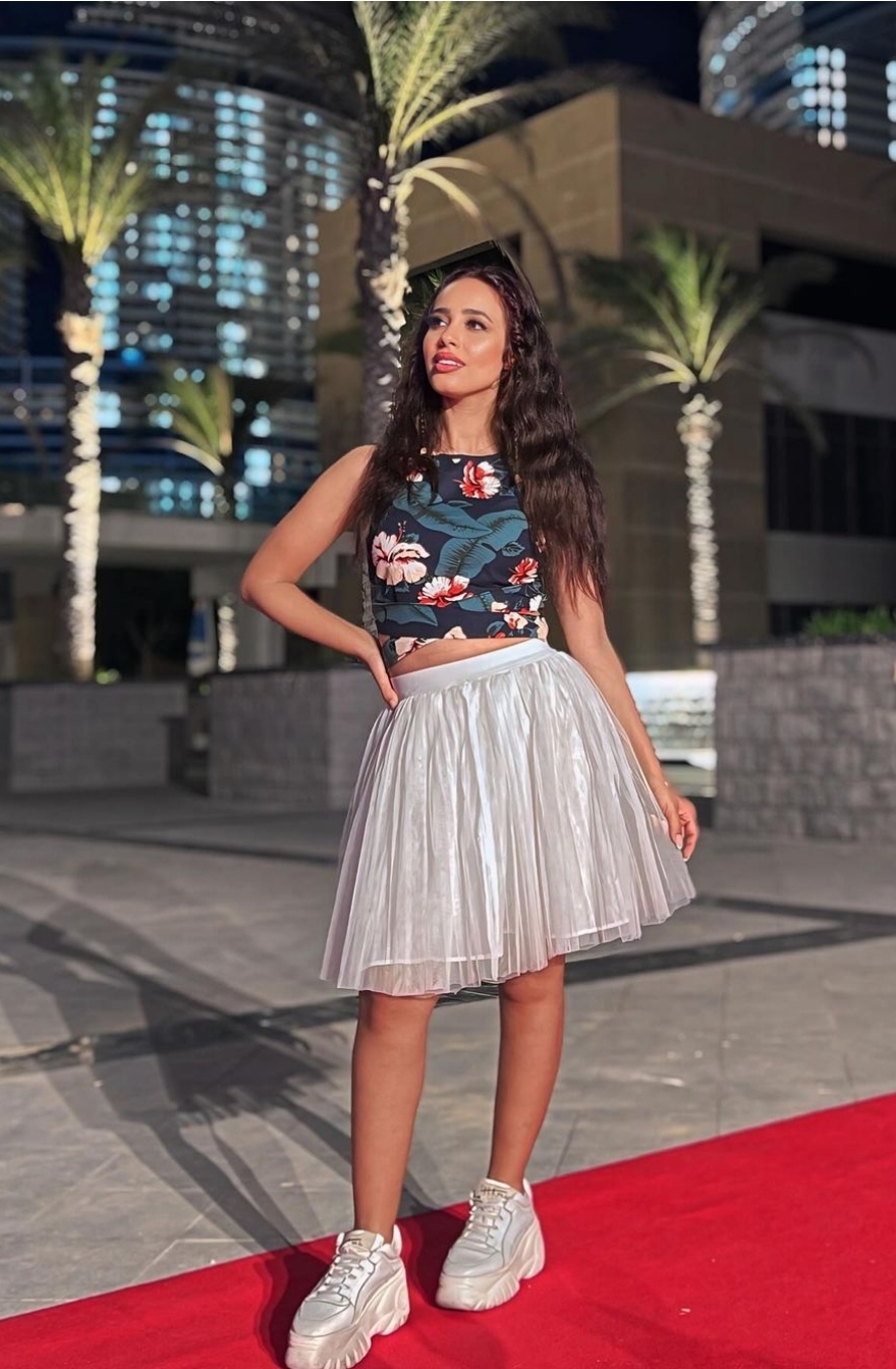 وبدت رنا سماحة بإطلالة صيفية، حيث ارتدت بادي مجسم بألوان متداخلة كشف عن خصرها الممشوق ونسقت عليه ميني جيب باللون الابيض لتستعرض قوامها الرشيق فيما انتعلت بحذاء رياضي بكعب عال.