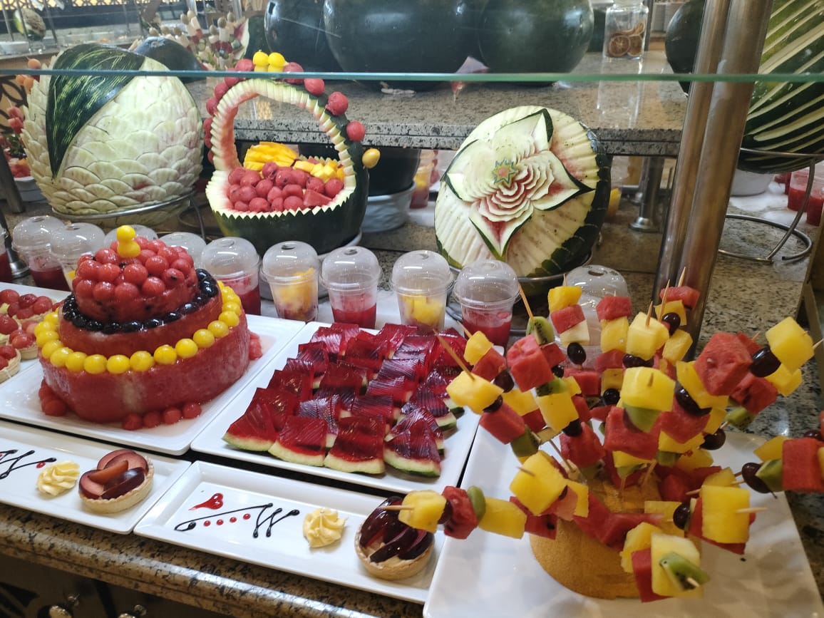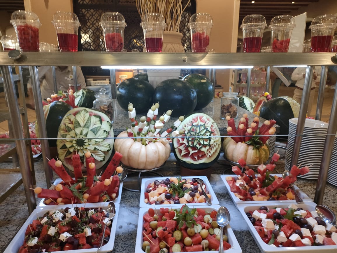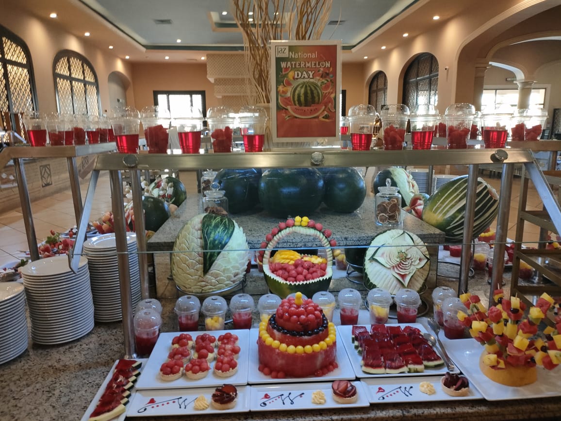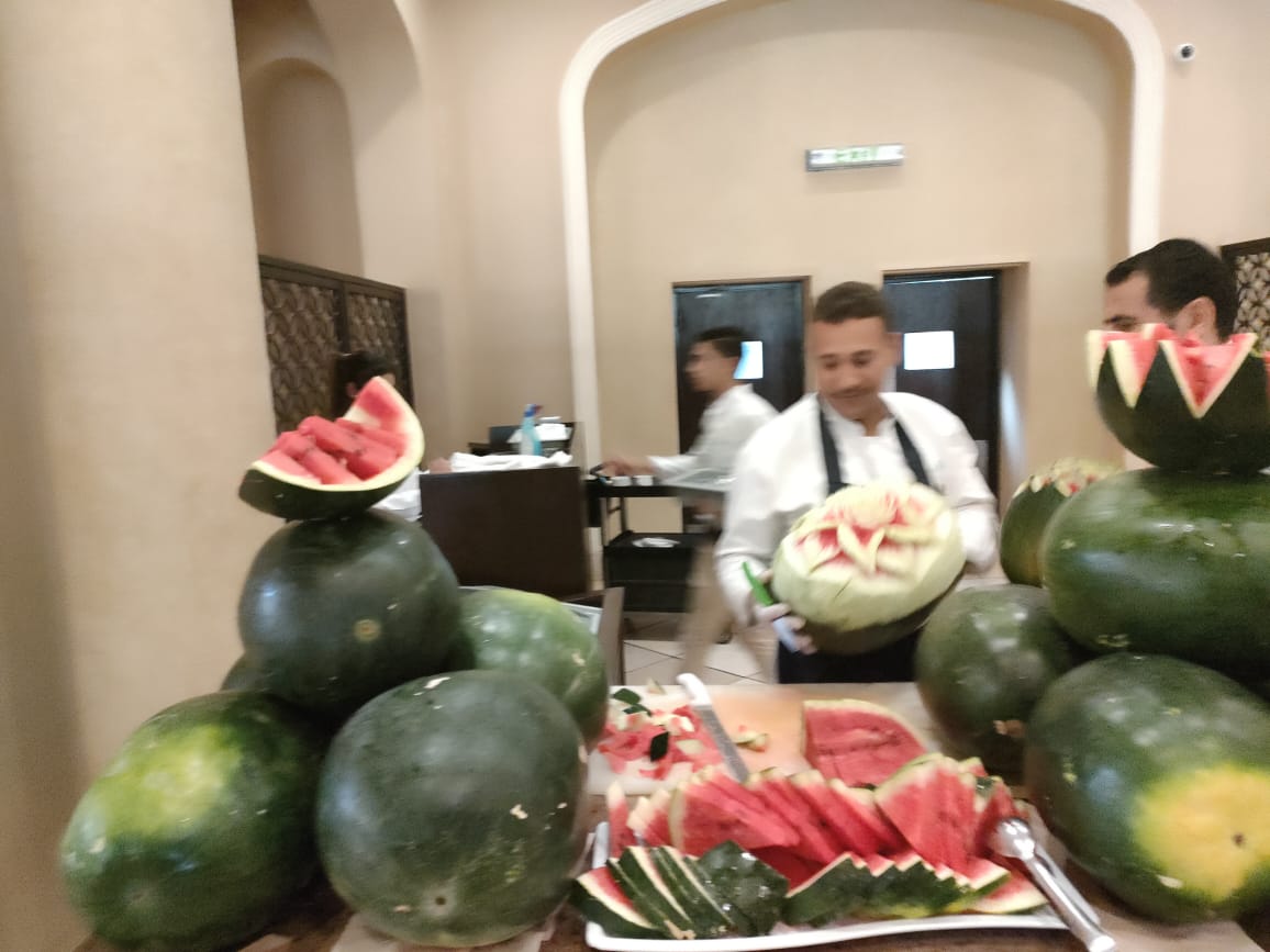 وأشار الشيف محمد عباس، الشيف العمومى بأحد فنادق الغردقة، إلى أن المهرجان شهد إقبالًا كبيرًا من نزلاء الفندق، حيث تم تصنيع الأكلات والعصائر وتم عمل نحت على البطيخ، حيث تم عمل المهرجان بالتزامن مع الاحتفال باليوم العالمى للبطيخ.