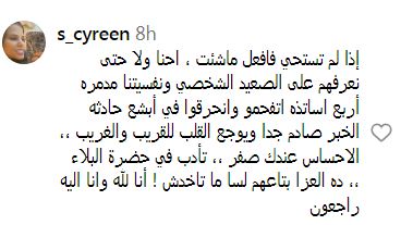 وسرعان ما انهالت التعليقات الهجومية عليها واتهموها بتجاهل وفاة الأربعة منتجين وهم حسام شوقي، فتحي إسماعيل، محمود كمال، تامر قتحي، بعدما نشرت صور جديدة من كواليس آخر لقاء تلفزيوني لها، وجاءت من بين هذه تعليقات: "إذا لم تستحِ فافعل ما شئت، إحنا ولا حتى نعرفهم على الصعيد الشخصي ونفسيتنا مدمره أربع أساتذة اتفحموا وانحرقوا في أبشع حادثه الخبر صادم جدا ويوجع القلب للقريب والغريب، الإحساس عندك صفر، تأدب في حضرة البلاء، ده العزا بتاعهم لسا ما تاخدش ! إنا لله وإنا إليه راجعون".