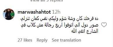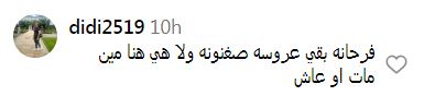 بينما علق متابعين آخرين، وقالوا: «ده فرحك كان وشة شؤم وليكي نفس كمان تنزلي صور دول اللي اتوفوا اربع رجالة مش كلاب في الشارع اتقي الله»، «فرحانه بقي عروسه صغنونه ولا هي هنا مين مات أو عاش»