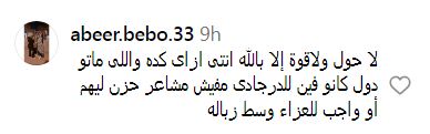 قالت متابعة :« لا حول ولاقوة إلا بالله انتى ازاى كده واللى ماتوا دول كانوا فين للدرجادى مفيش مشاعر حزن ليهم أو واجب للعزاء وسط زبالة»، وعلقت أخرى :« ازاى تنزلى صور والناس ماتت وهما راجعين من فرحك اصبرى ٣ أيام حتى»، «بصي مبروك وربنا يهنيكي يارب بس الناس ماتوا يعني المفروض حداد 3 أيام وبراحتك برضه انتي ادري ».