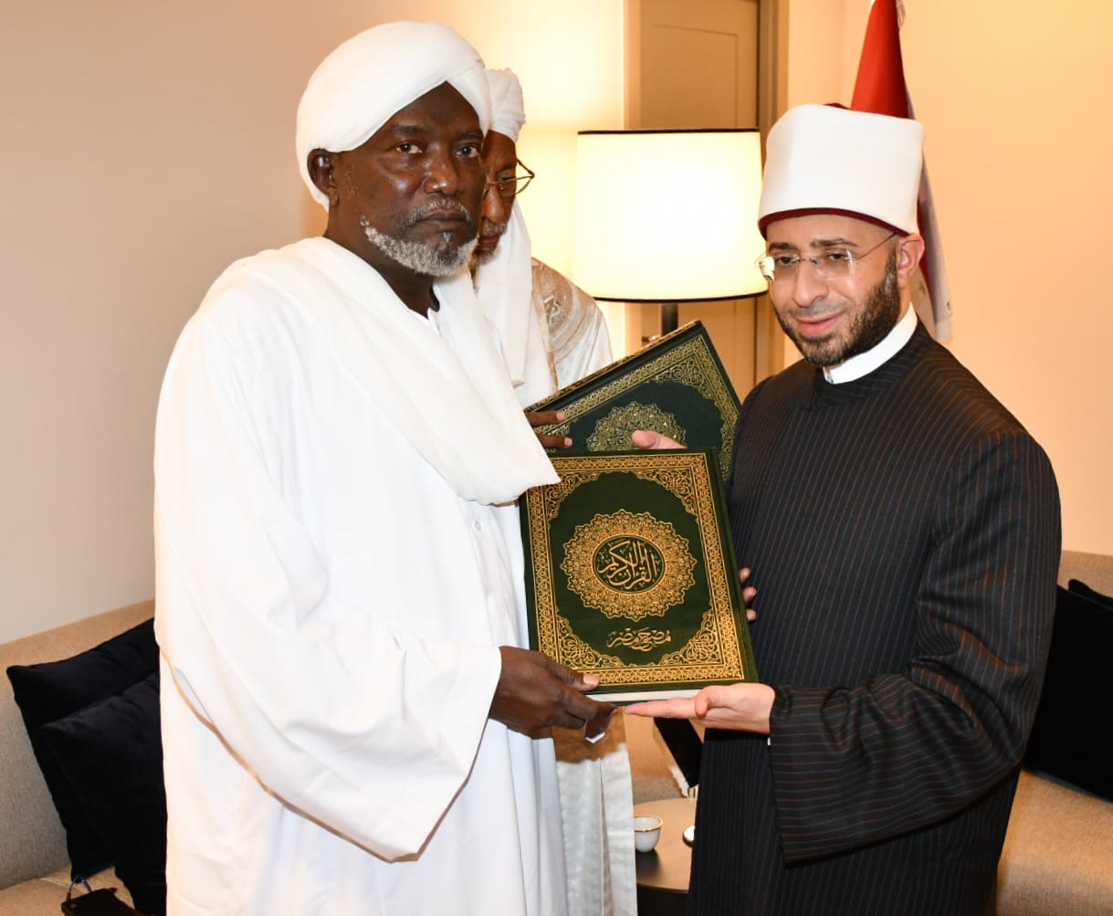 وفي ختام اللقاء أهدى  الدكتور أسامة الأزهري إلى كل من الشيخ الدكتور محمد خاطر عيسى رئيس المجلس الأعلى للشئون الإسلامية ورئيس هيئة تنظيم إدارة الحج والعمرة في جمهورية تشاد، والشيخ العلامة أحمد النور الحلو المفتي العام لجمهورية تشاد والنائب الثالث لرئيس المجلس الأعلى للشئون الإسلامية بجمهورية تشاد نسخة من مصحف مسجد مصر وهو المصحف الذي وجه بطباعته سيادة الرئيس عبد الفتاح السيسي رئيس الجمهورية عند افتتاح مسجد مصر الكبير ومركزها الثقافي الإسلامي بالعاصمة الإدارية الجديدة، ولمصحف مصر عدد من الطبعات بمقاسات مختلفة الكبير والوسط والصغير، وقد تم طباعة مصحف مصر على نسخة الشمرلي مختوم الآيات بالرسم العثماني برواية حفص عن عاصم، بخط محمد سعد إبراهيم الشهير بحداد.