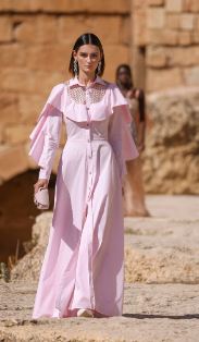 كان للفساتين المصممة بقصة القميص حصة كبيرة ضمن مجموعات الأزياء الجاهزة هذا الموسم، وقدمت بأشكال متنوعة كفيلة بإرضاء كافة الأذواق، ولكننا أحببنا الفستان الناعم المحتشم والطويل والمصمم بإحدى نغمات الزهري الفاتحة التي تميل للون الليلك من مجموعة المصمم جورج حبيقة Georges Hobeika، ويمكنك تنسيقه مع حذاء مدبب أبيض بكعب رفيع قصير، واحملي حقيبة صغيرة من نفس لونه، وزيني الطلة بأقراط طويلة مرصعة وساعة من الذهب الأبيض.