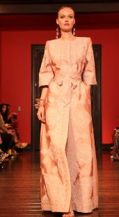 واستوحت مجموعة الفساتين المحتشمة من الحضارة العربية والمصرية لتعيد أمجاد الذوق الراقي من جديد للمرأة العربية لتبرز في تصاميم الفساتين المستوحاة من قصة القفطان لتؤكد على تأثر الدور الأزياء العالمية بالثقافة الشرقية الغنية.