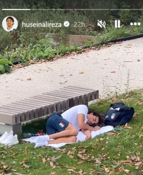 وبحسب صحيفة "اندبيندنت" البريطانية، نشر المجذف السعودي حسين علي رضا صورة لـ سيكون، الذي فاز بالميدالية الذهبية في سباق 100 متر ظهراً، وهو نائم على منشفة بيضاء تحت شجرة.