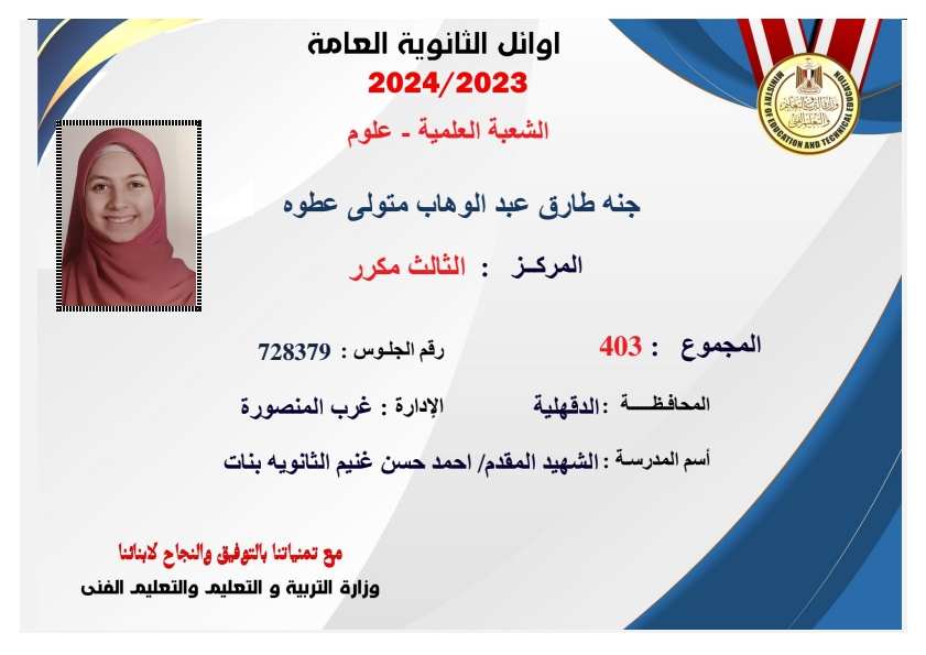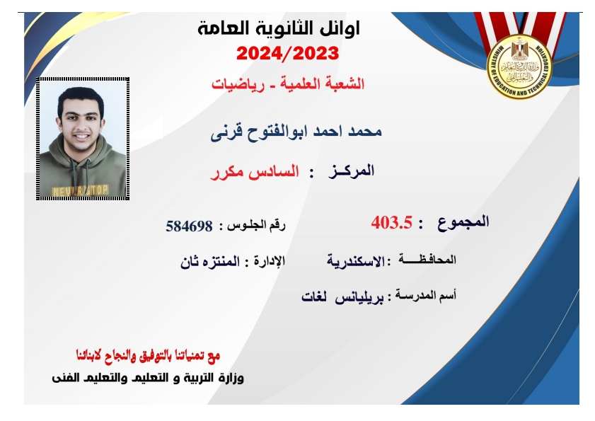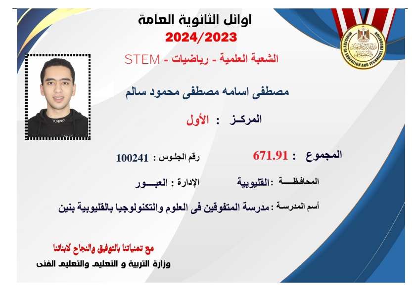 بالصور| ننشر قائمة أوائل الثانوية العامة 2024