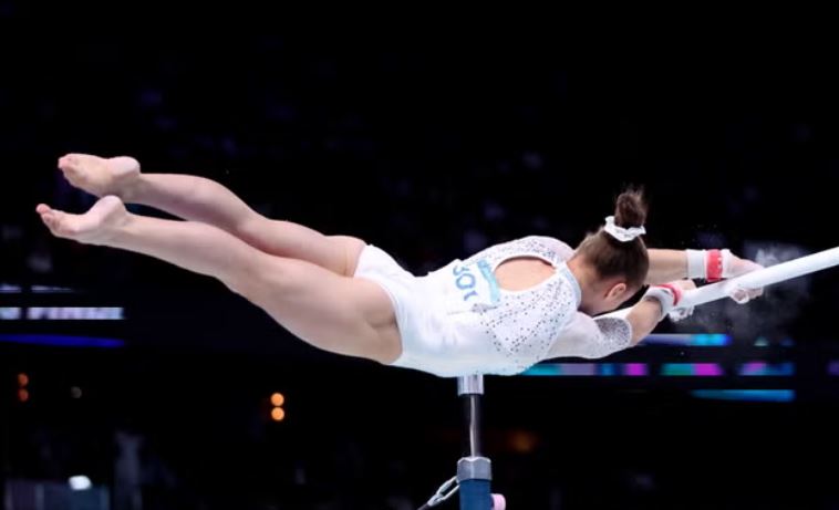 استعدت لاعبة الجمباز الجزائرية كيليا نمور لتعتلي عارضة الجمباز وحبس الجمهور أنفاسه بينما كانت كيليا تجمع سرعتها وتطير في الهواء قبل أن تقفز مرتين على العارضة وتهبط بأضعف قفزة رفعت ذراعيها وانفجرت في البكاء.