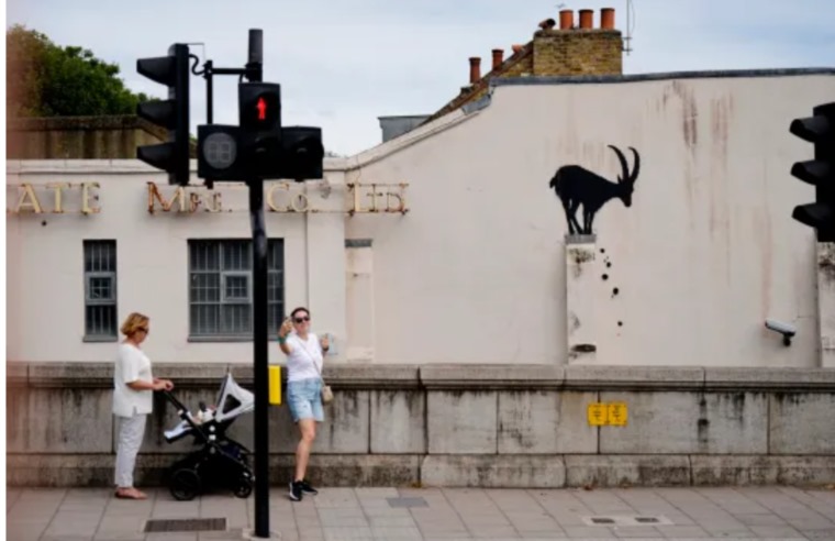 بعد ظهور لوحة جديدة مرسومة على جدران أحد المباني ببريطانيا أكد الفنان الشهير بانكسي، أنه وراء هذا العمل، وتعرض القطعة الفنية، الموجودة في كيو غرين، غرب لندن، ماعزاً جبلياً يتوازن بشكل خطير على عمود بينما تتساقط الصخور أسفله ، وفق صحيفة "ميترو".