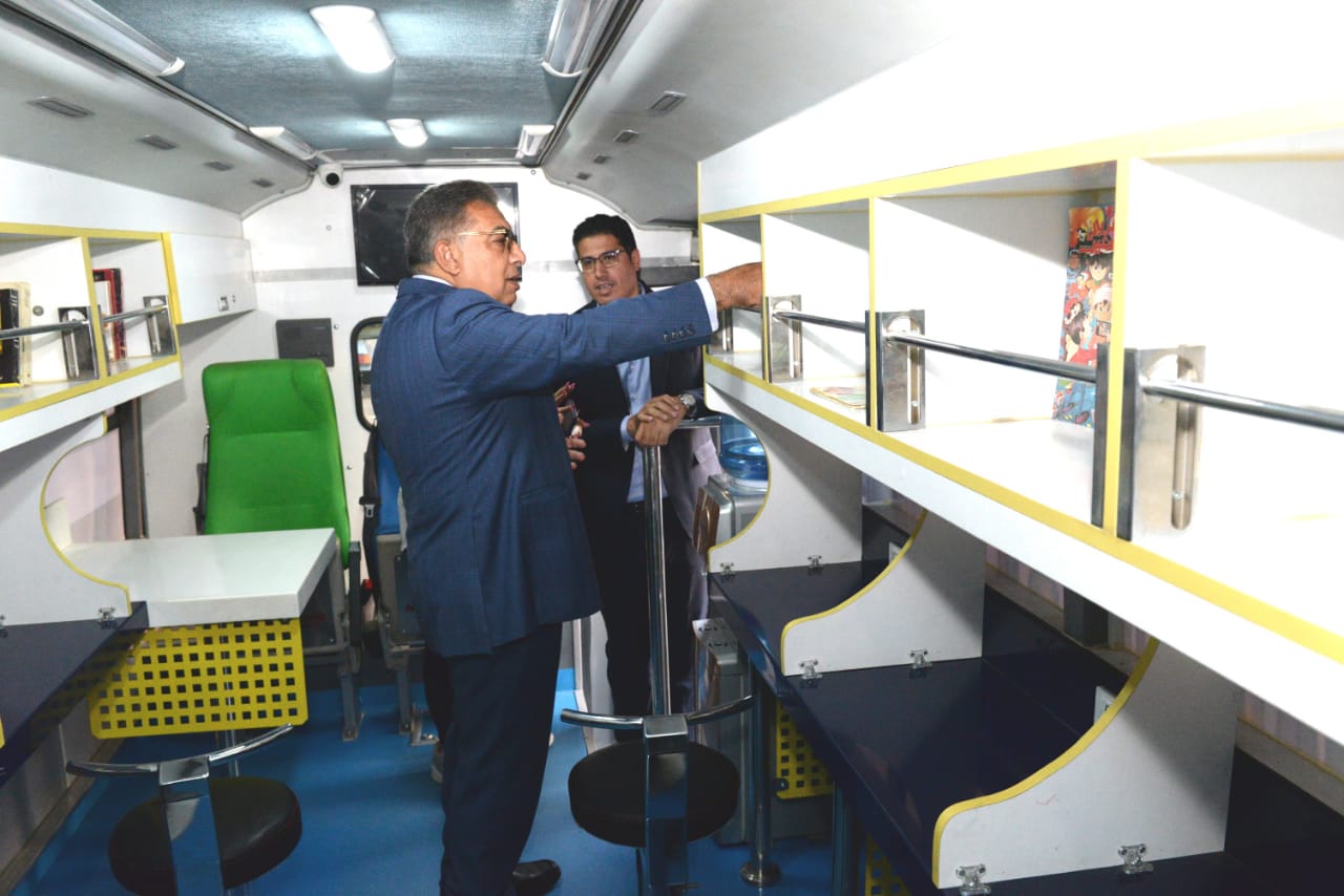 قبل إنطلاقها للمشاركة بمهرجان .. محافظ الدقهلية يتفقد المكتبة المتنقلة