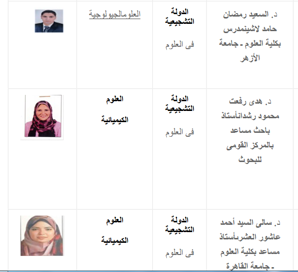 وبالنسبة لجائزة الدولة التشجيعية، فازت بها الأستاذة الدكتورة هدي رفعت محمود رشدان، أستاذ مساعد بالمركز القومي للبحوث في مجال العلوم الكيميائية، والدكتورة أمنية محمد عبد العزيز حسن ،باحث مساعد بالمركز في مجال العلوم البيولوجية ،والأستا الدكتور أحمد عبدالغني حامد عبد الله ،أستاذ مساعد بالمركز في مجال العلوم البيولوجية.