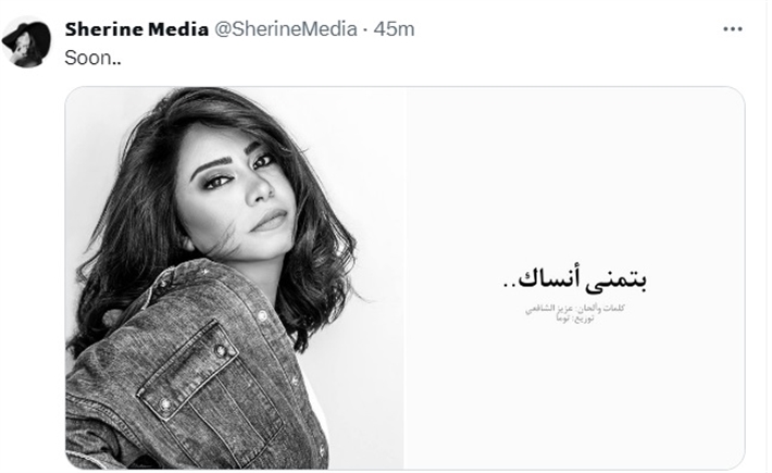 ووفقًا لما نشره حساب "شيرين ميديا"، من المقرر أن تكون أغنية شيرين عبد الوهاب الأولى مع شركتها الجديدة بعنوان "بتمنى أنساك" وهي من كلمات وألحان عزيز الشافعي وتوزيع توما.