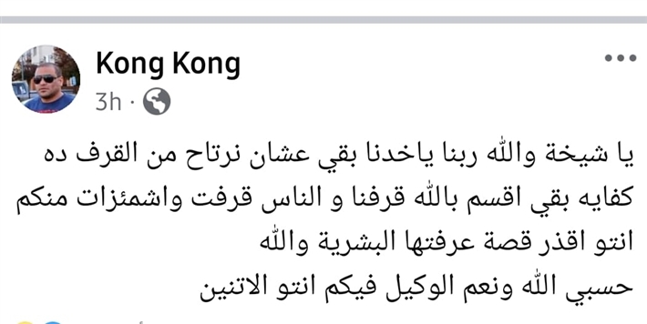 وكتب محمد عبد الوهاب: "يا شيخة والله ربنا ياخدنا بقي عشان نرتاح من القرف ده كفايه بقي اقسم بالله قرفنا و الناس قرفت واشمئزت منكم .. انتوا اقذر قصة عرفتها البشرية والله .. حسبي الله ونعم الوكيل فيكم انتو الاتنين".