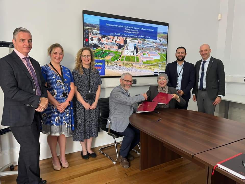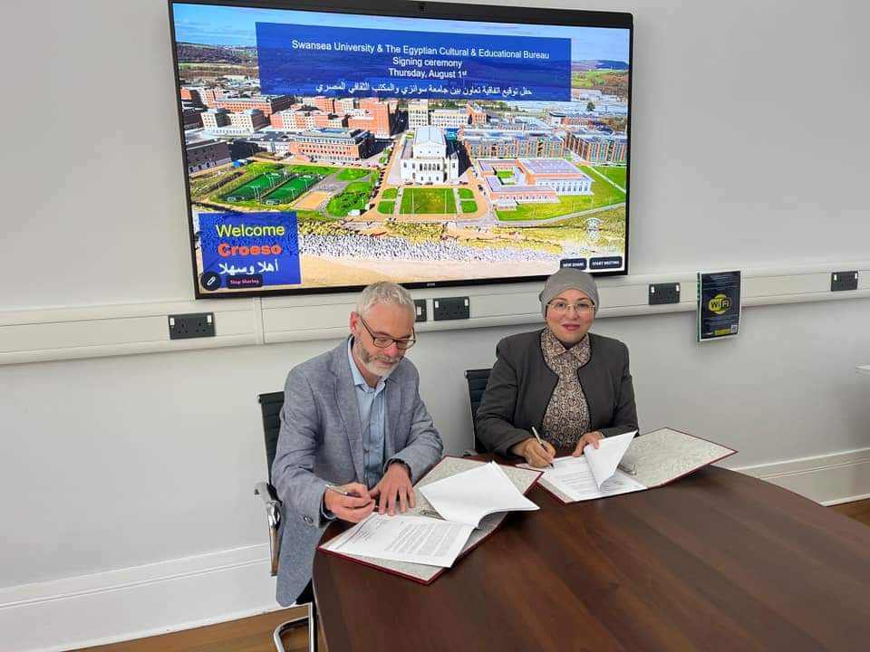 ووقعت د. رشا كمال الملحق الثقافي المصري بلندن أثناء الزيارة مذكرة تفاهم بين المكتب الثقافي والتعليمي المصري وجامعة سوانسي، استهدفت التعاون في المجالات التعليمية والثقافية وتعزيز مكانة مصر كسوق للاستثمار في مجالات التعليم، ووقعها من جانب الجامعة الدكتور مارك سكيبن، مدير التسويق والتوظيف والشؤون الدولية بالجامعة.