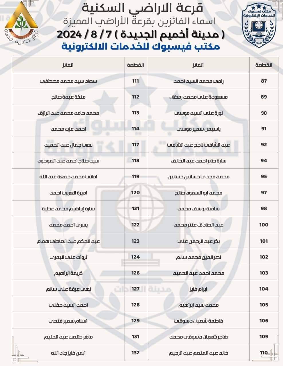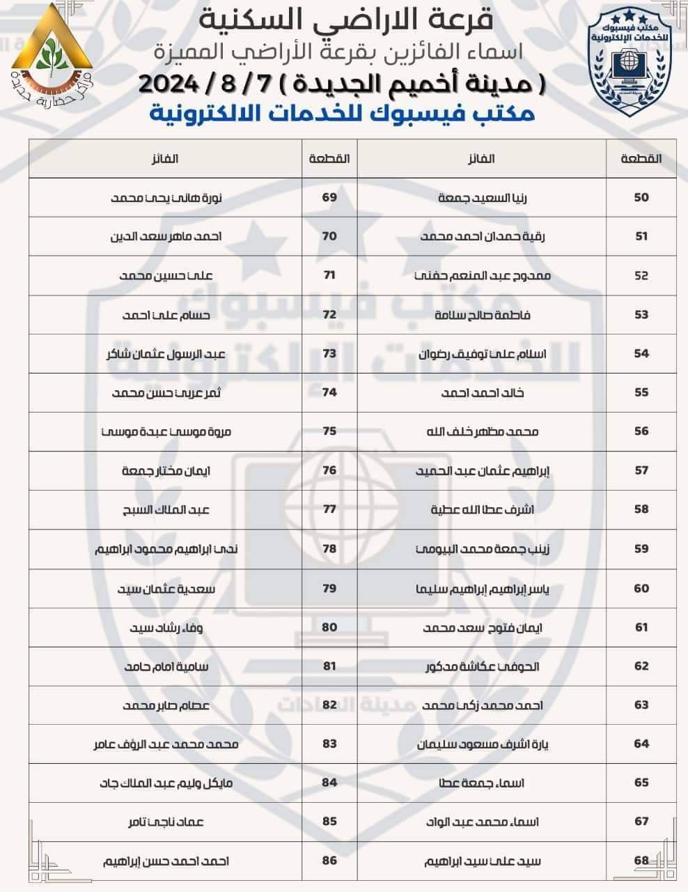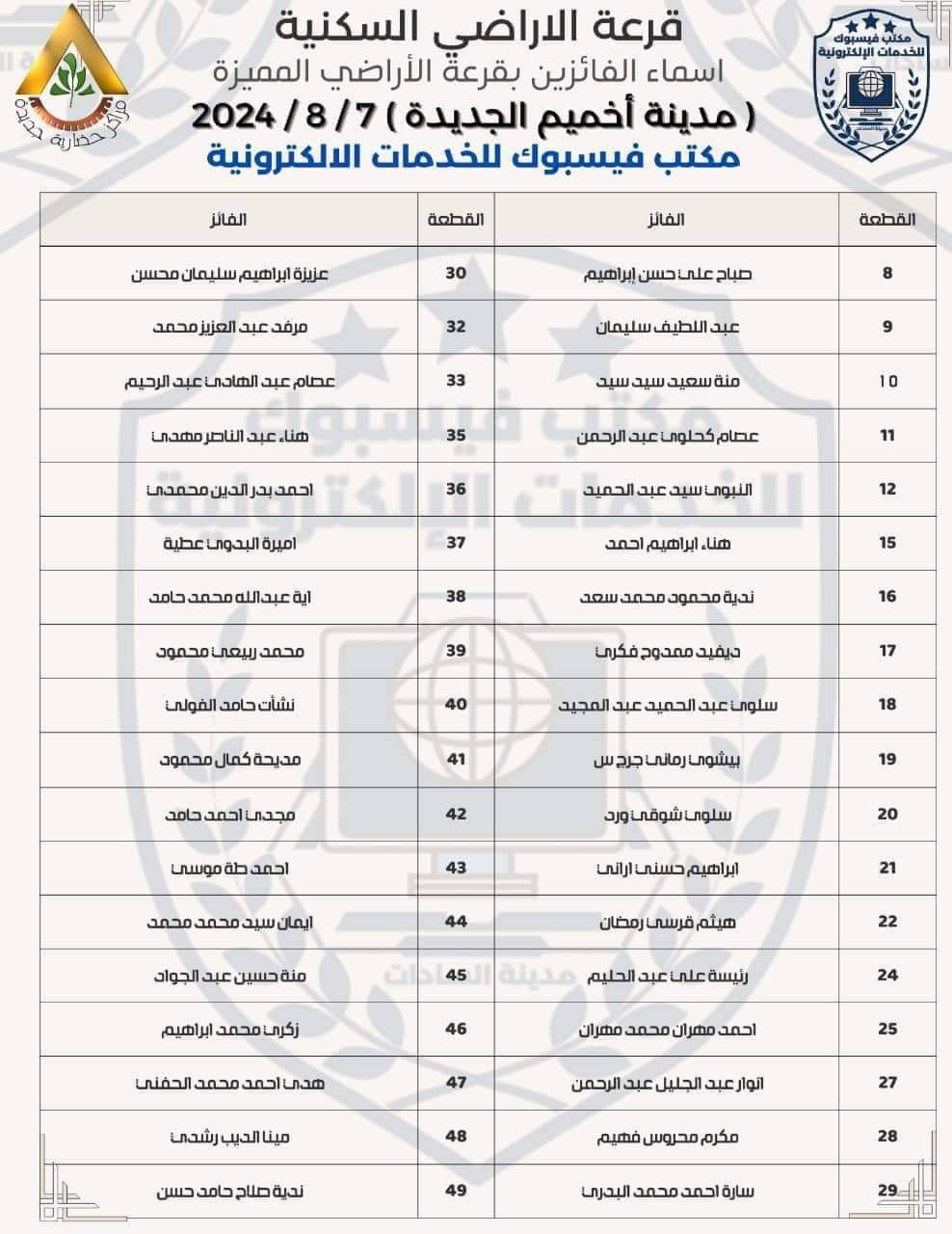 أسماء الفائزين في قرعة أراضى أخميم الجديدة