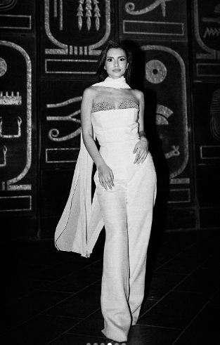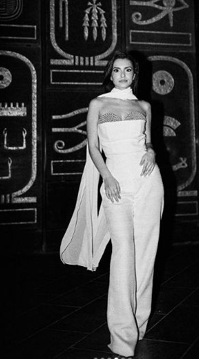 وعكست الإطلالة قوامها الممشوق ووزنها المثالي بشكل ناعم وجذاب كما انها تناغمت مع أجواء المتحف المصري.