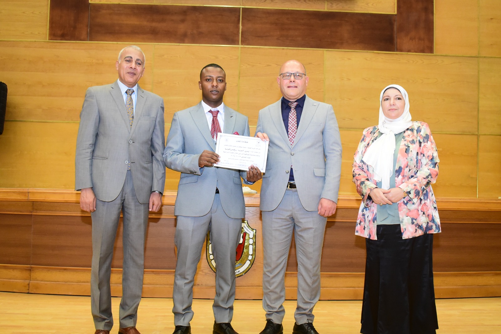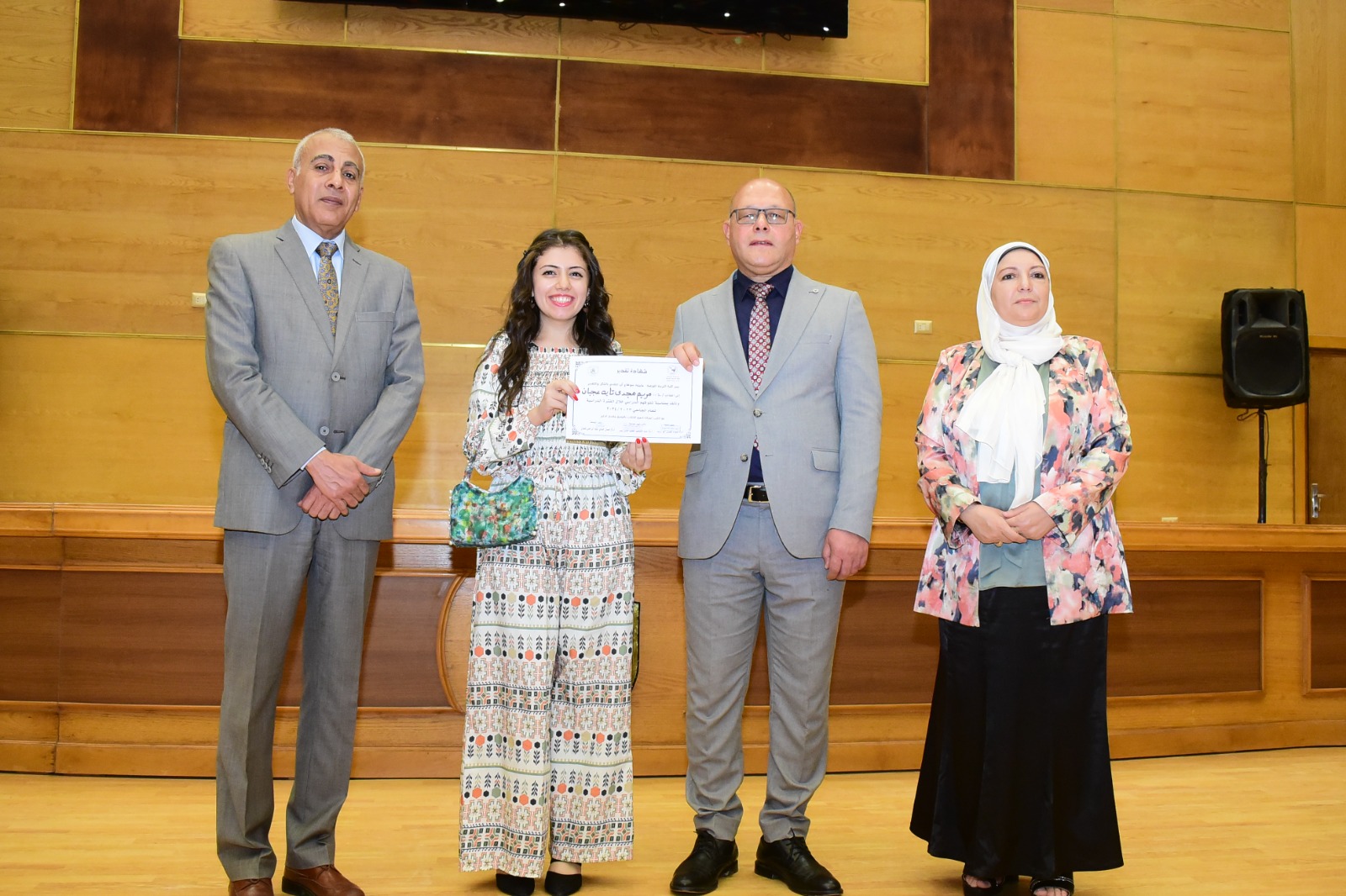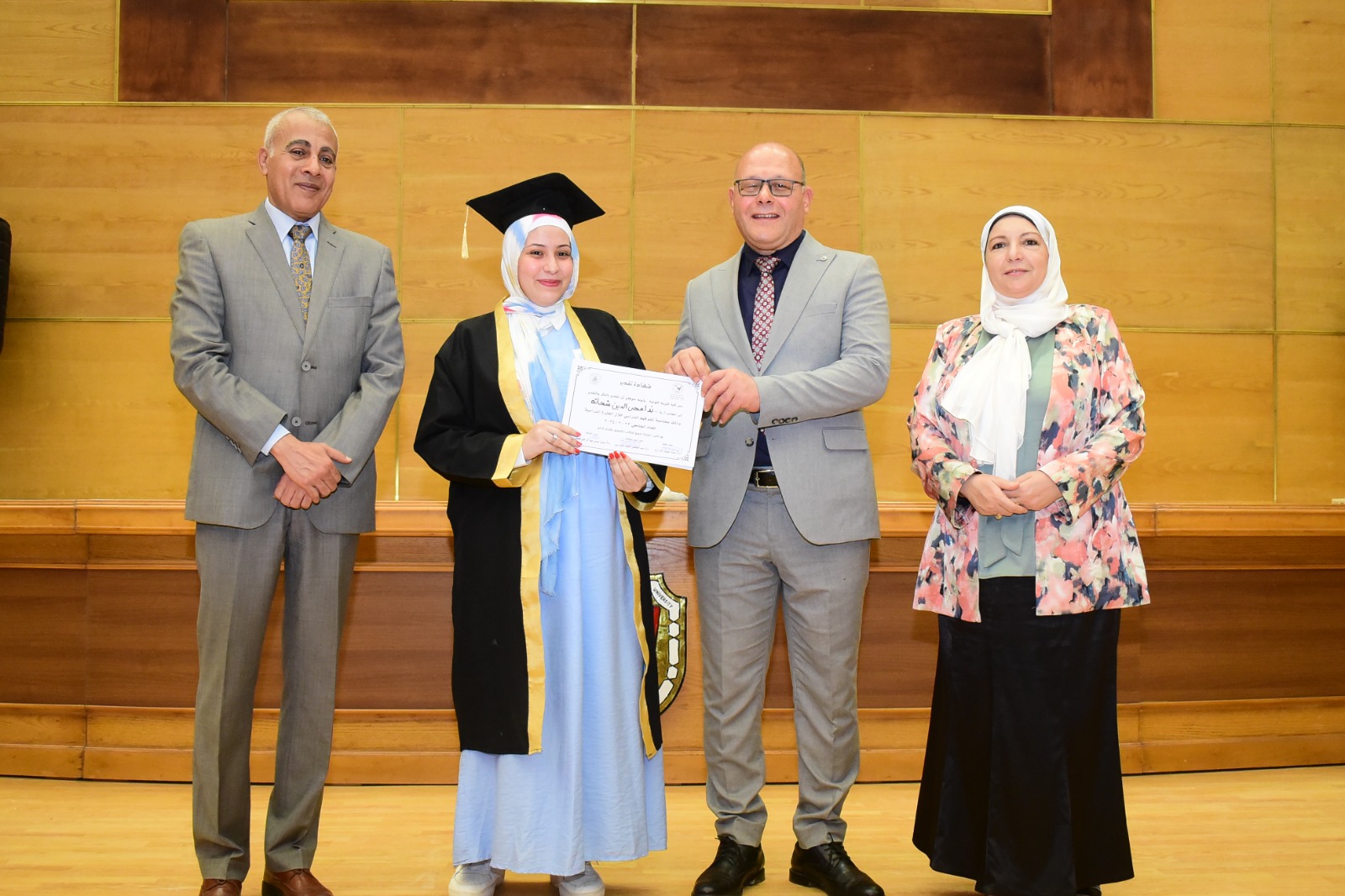بحضور الدكتور عبدالناصر يس نائب رئيس الجامعة لشئون التعليم والطلاب، والدكتور خالد عمران نائب رئيس الجامعة لشئون خدمة المجتمع وتنمية البيئة، والدكتورة لمياء أبو زيد عميد الكلية، واللواء طارق حافظ مدير الأمن الجامعي، وكوكبة من عمداء الكليات، ووكلاء الكلية ورؤساء الأقسام ونخبة من أعضاء هيئة التدريس ومعاونيهم وأعضاء الجهاز الإداري بالكلية، وأولياء أمور الخريجين.
