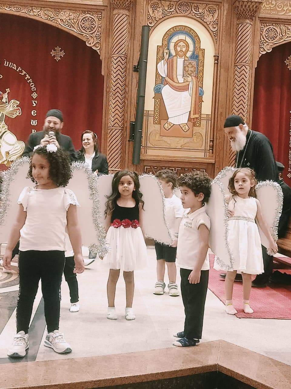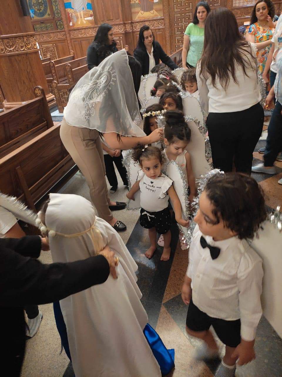 تزين أطفال كنيسة السيدة  العذراء  مريم والشهيد مارجرجس التابعة للأقباط الأرثوذكس بمدينتي، بالفساتين البيضاء والزهور، اليوم الجمعة، احتفالًا بالنهضة الروحية بمناسبة فترة “صوم البتول أم النور”، وذلك في إطار الدور الرعوي للأباء الكهنة الذين يحرصون على تنمية المحبة والتعلق بالطقوس وكل ماهو يتعلق بالعائلة المقدسة.