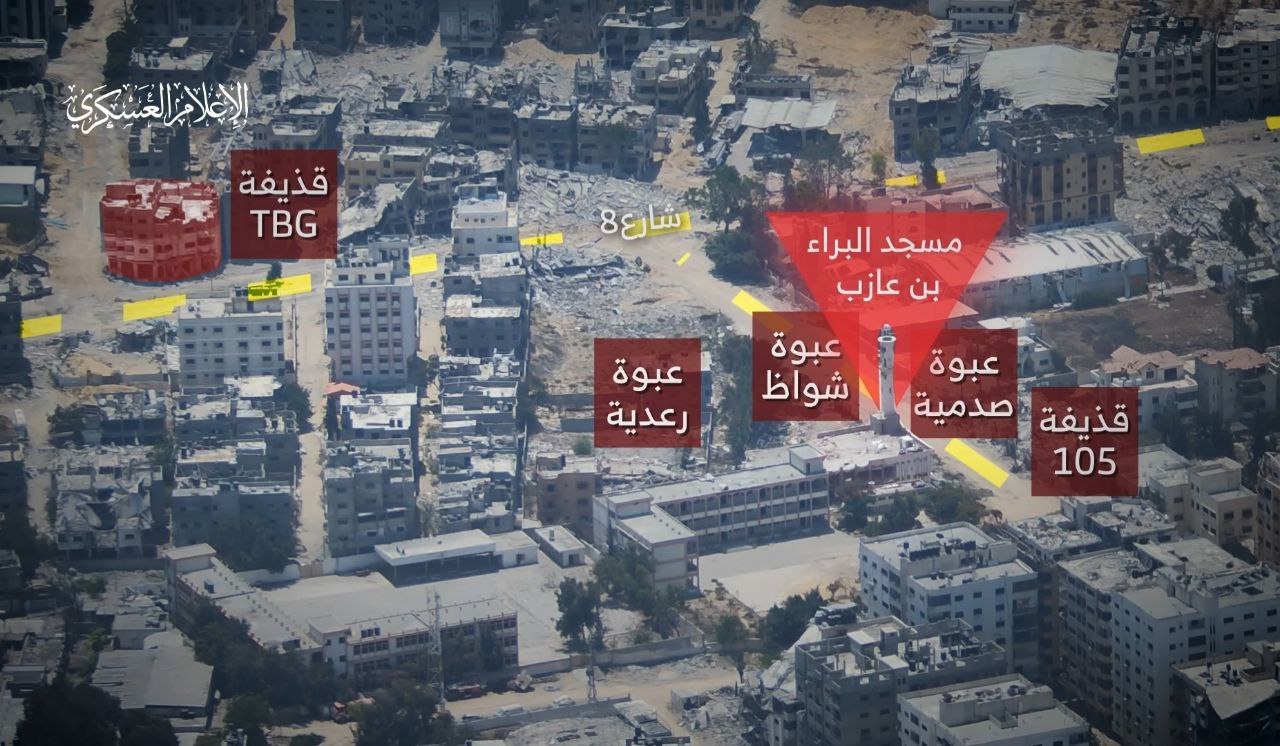 ونشرت القسام مشاهد من كمين "البراء" المركب، والذي وقع بتاريخ 26 يوليو 2024 بحي تل الهوى جنوب مدينة غزة، في محيط مسجد البراء بن عازب .