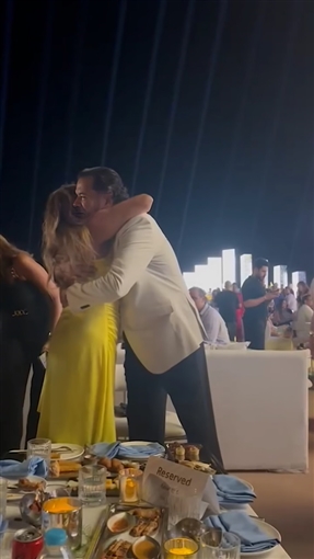 وحرص راغب علامة على تقديم التحية لها ونزل من المسرح ليسلم عليها، بقبلات واحضان نارية.
