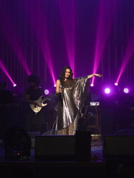 فضفاض ولامع.. كارمن سليمان تشعل حفلها الغنائي بالساحل الشمالي